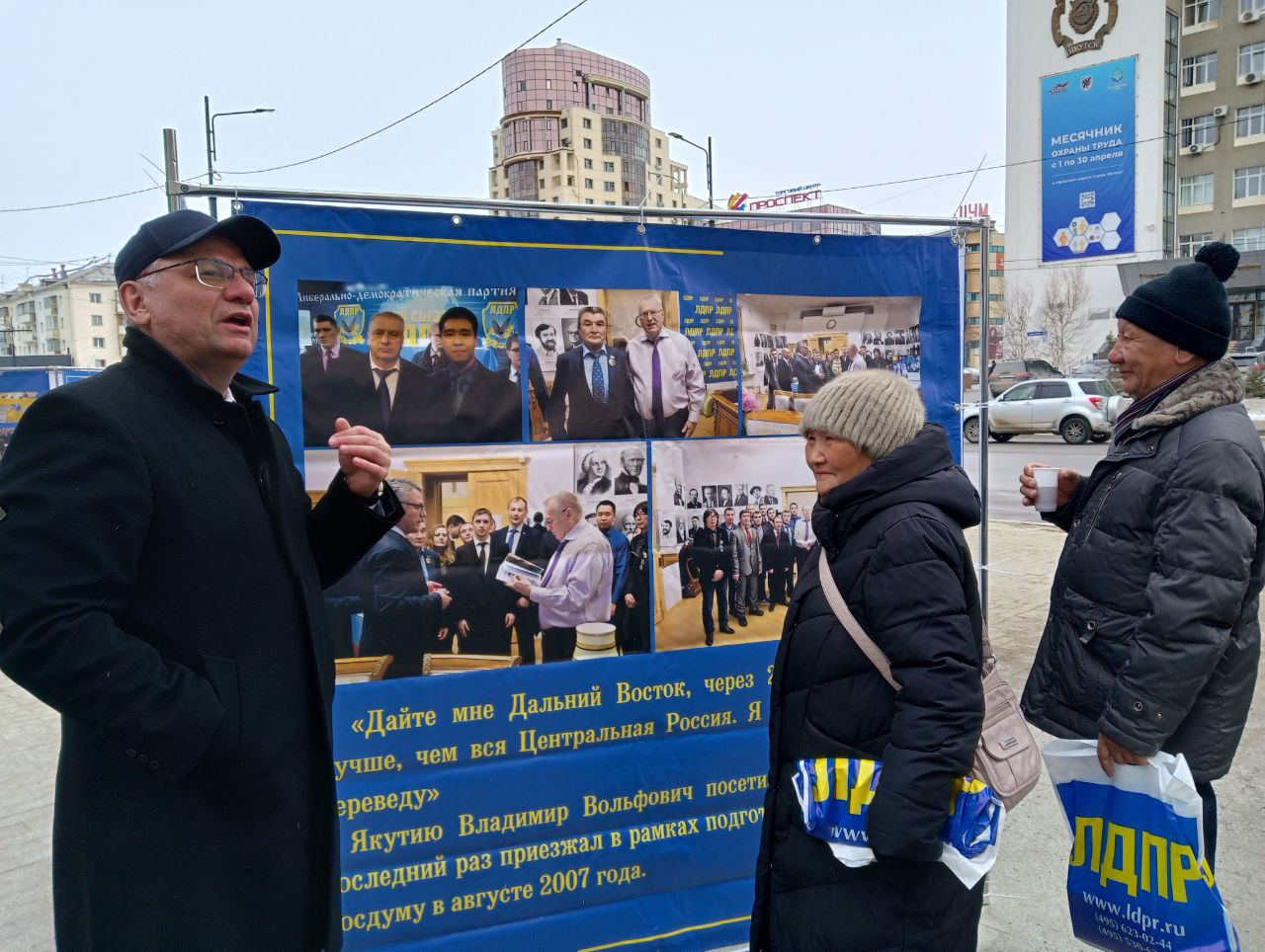 В этот пасмурный день в Якутске шел снег. В такую погоду угощение от активистов ЛДПР - вкусный и горячий чай, горожане принимали с радостью и благодарили за такую акцию, вспоминали добрыми словами основателя партии. Одна женщина поделилась воспоминанием встречи с Жириновским в Благовещенске, на которой он пожал ей руку. Как она говорит, «после этого два дня не мыла руки», - так это было для нее важно.