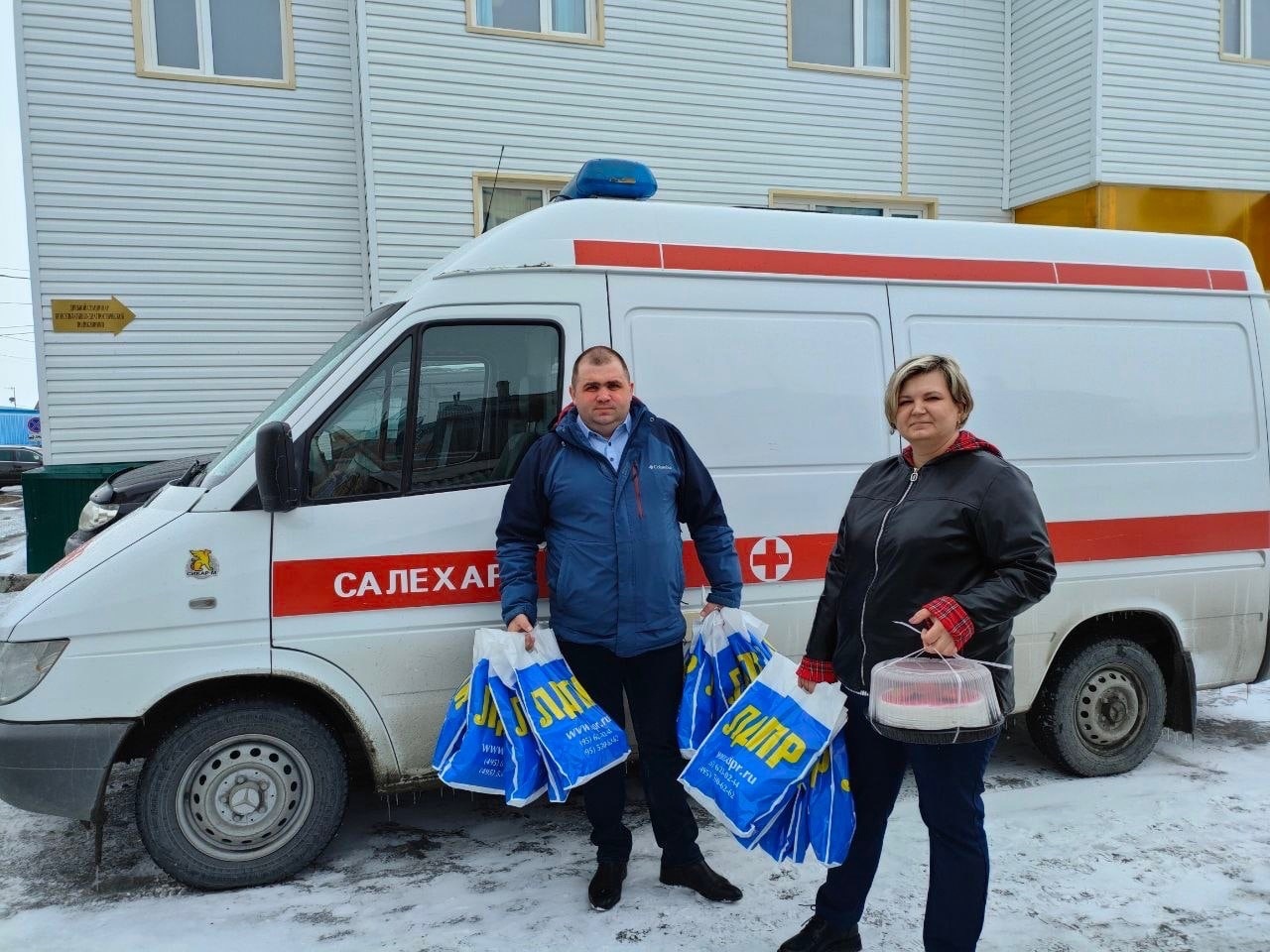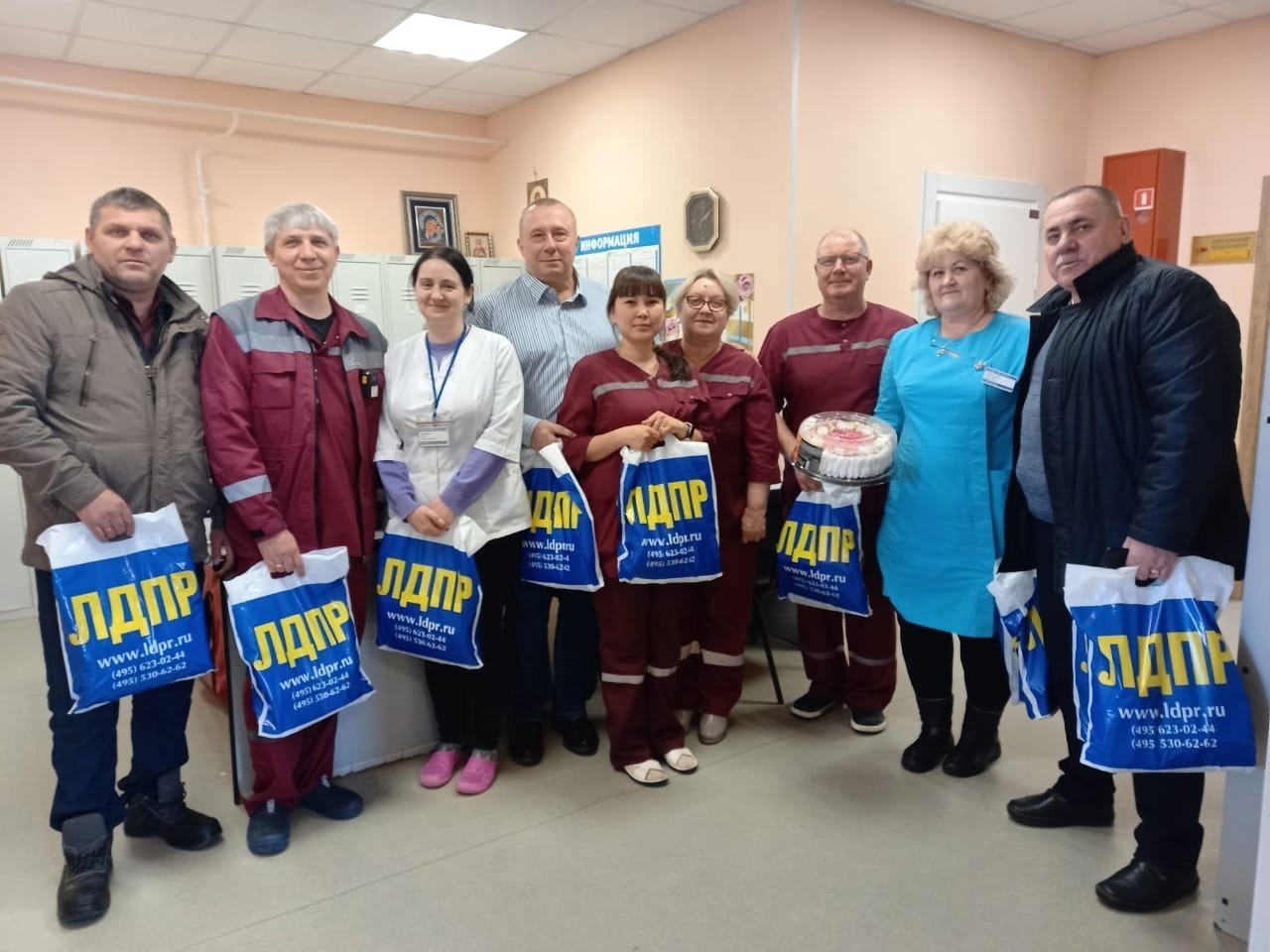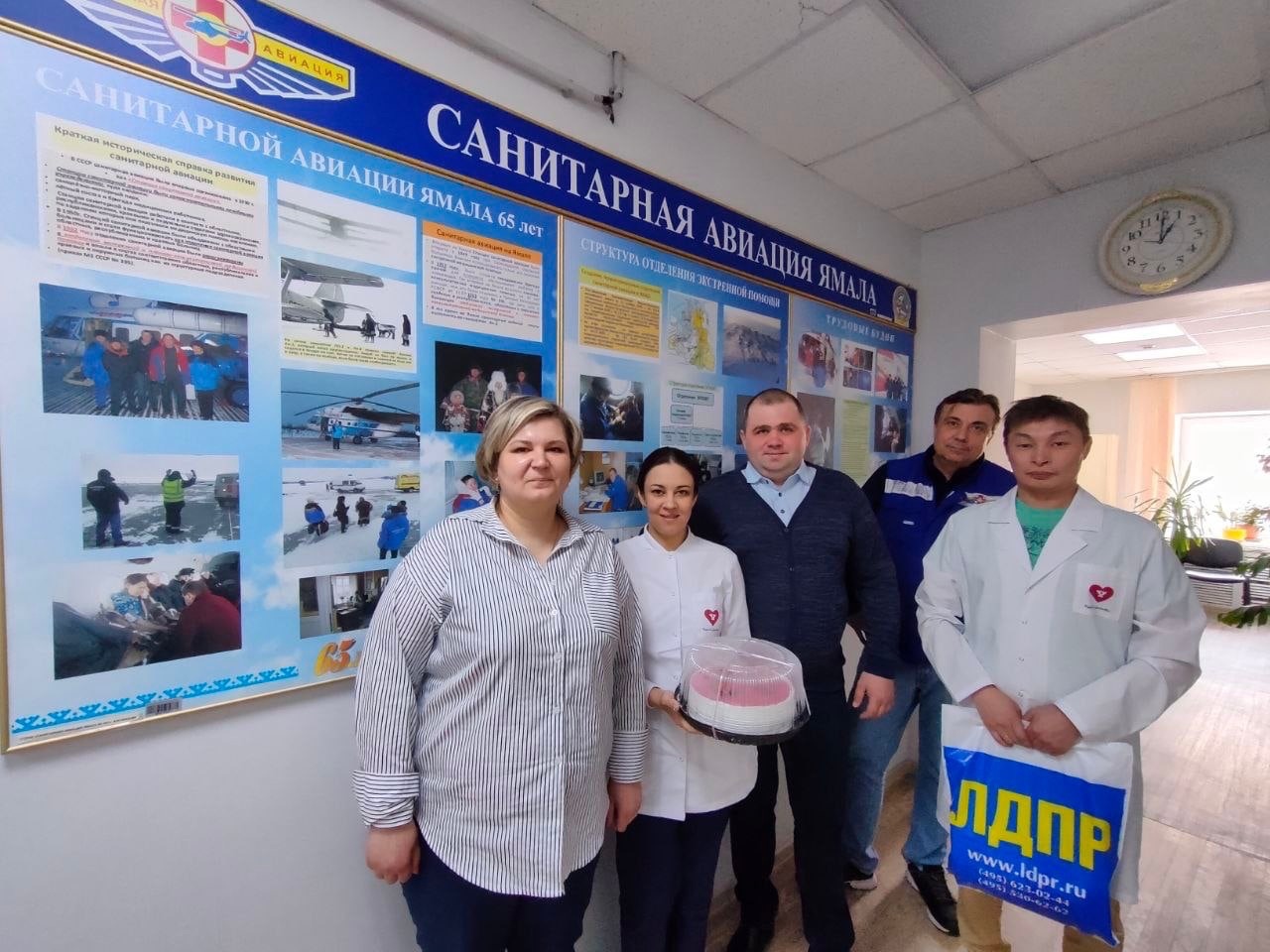 Сопровождая поздравление теплыми пожеланиями представители ЛДПР дарили коллективам учреждений здравоохранения торты и фирменные подарки от ЛДПР, а также высказывали медикам слова благодарности за профессионализм, внимание и отзывчивость к жителям Ямала.