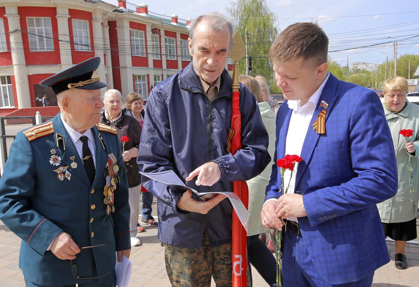 После митинга Александр Маринков обсудил с председателем Совета ветеранов Пролетарского округа Анатолием Ивановым и представителями поисковых отрядов работу по поиску павших солдат в этом году.