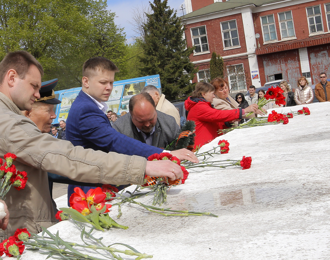 В честь погибших в годы Великой Отечественной войны собравшиеся почтили память минутой молчания и возложили цветы к братской могиле