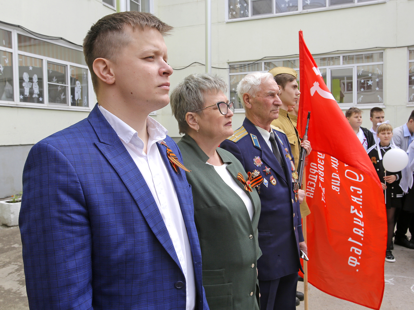 «Пролетарский округ — самый большой в Туле, и замечательно что все жители помнят и чтят своих Героев! В каждой семье есть свой пример доблести и мужества. Мы должны хранить память об их подвигах и передавать ее из поколения в поколение», — поздравил школьников и педагогов с наступающим праздником Победы Александр Маринков.