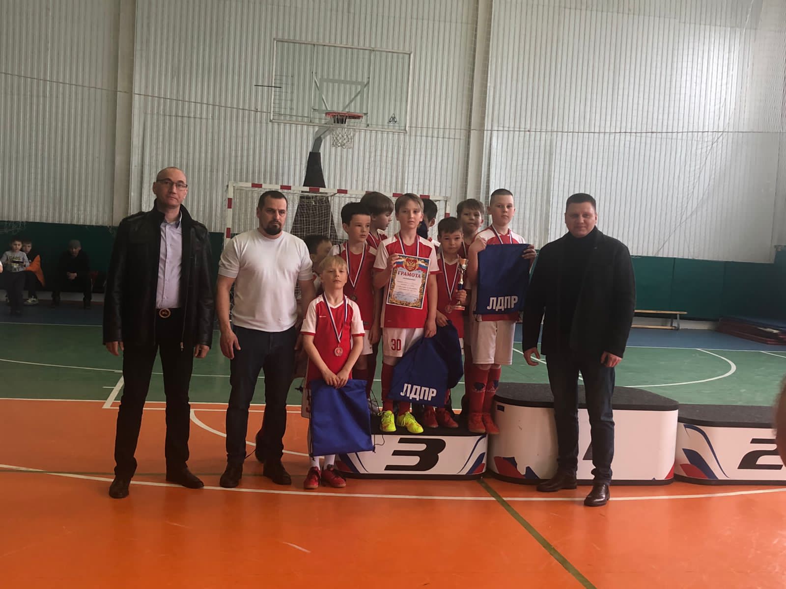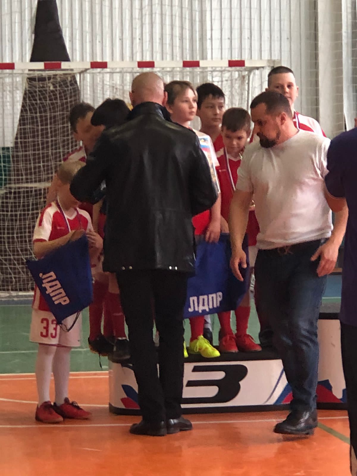 В преддверии дня Победы, в Мирнинском районе состоялся районный турнир по мини-футболу среди учащихся городов Мирный, Удачный и поселка Айхал. Члены ЛДПР Андрей Руськин и Сергей Илько вручили призы победителям и участникам соревнований