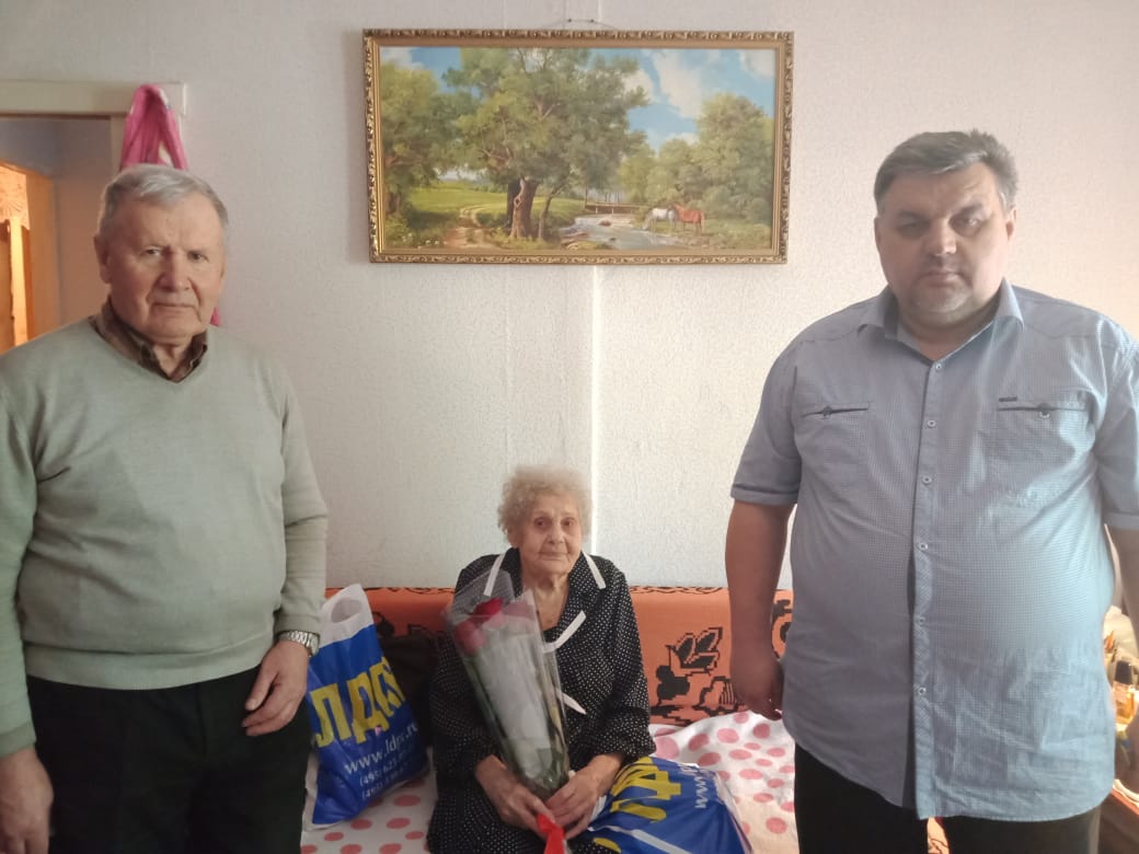От лица Саратовского регионального отделения ЛДПР партийцы поздравили Прасковью Алексеевну с Днём Победы, пожелали ей долгих лет жизни и вручили памятный подарок.