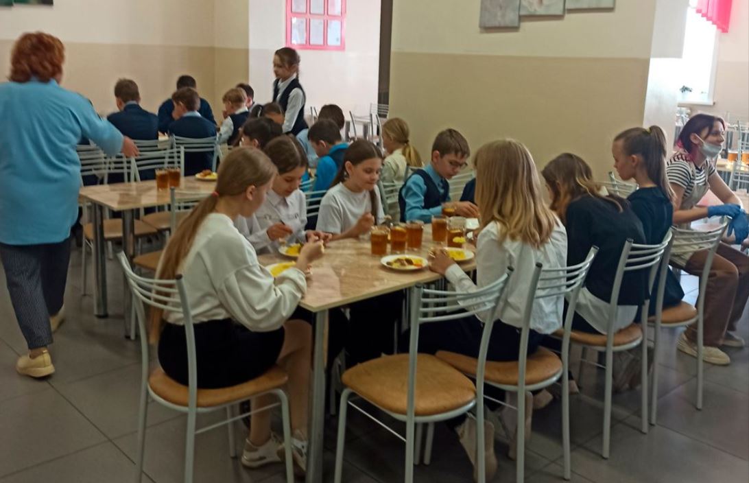 Дети приходят в столовую организованно, под присмотром учителя. Накрывать столы помогают дежурные по столовой.