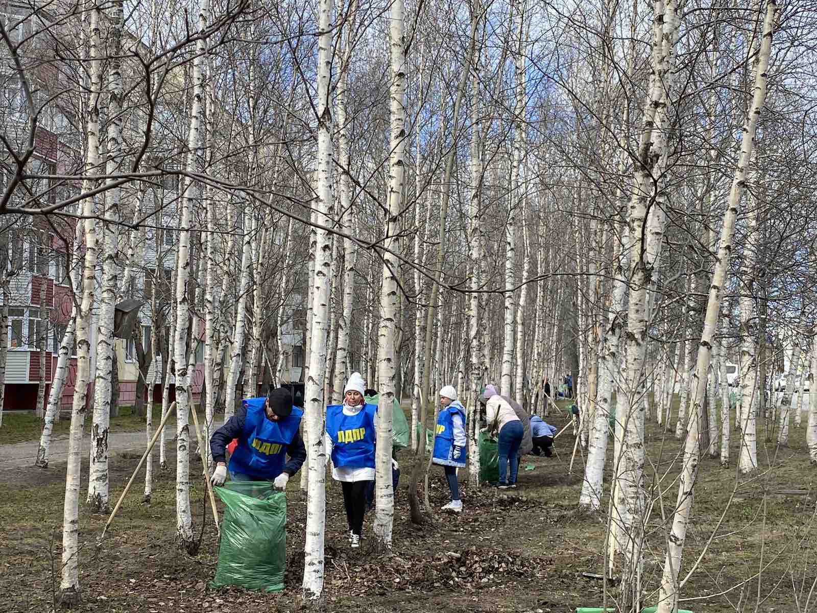 Активисты и сторонники Сургутского местного отделения ЛДПР во главе с координатором отделения Виктором Сысуном, вооружившись граблями, лопатами, мешками для мусора, вышли на городской субботник