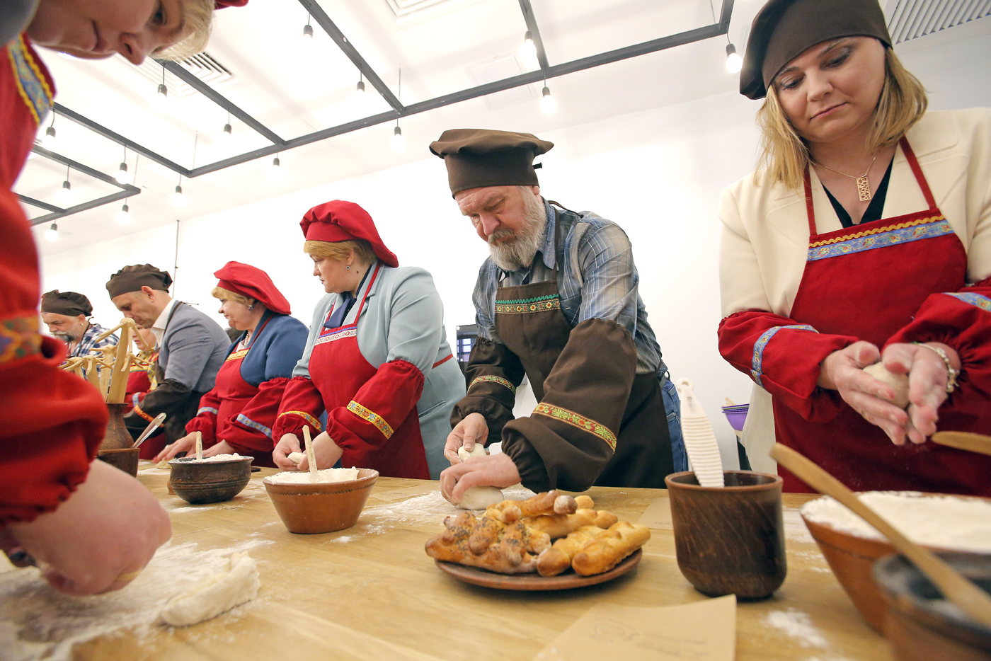 Депутаты познакомились с работой тульского филиала музея. Вначале осмотрели экспозицию, рассказывающую о деятельности археологов и реставраторов, увидели уникальные предметы, над восстановлением которых сейчас работают сотрудники «Куликова поля». Это сабли, клинки, стрелы, украшения. Некоторые из них датируются VII-VIII веками. Сотрудники музея продемонстрировали и современные технологии. Проект виртуальной реальности – квест «Тайны Куликова поля» появился в филиале недавно, но уже получил много положительных отзывов. С помощью шлема можно стать участником раскопок и реставрации артефактов, обнаруженных на первом ратном поле, а также научиться владеть копьем, сулицей, реконструировать пластинчатый доспех и кольчугу. В музее проводят множество мастер-классов: изготовление свечей, глиняных изделий, роспись, рисование миниатюр. По словам сотрудников, эти занятия особенно интересны и полезны детям, ведь это процесс познавательный: ребятам рассказывают об истории нашей страны, традициях предков. Посетили парламентарии и выставку «Дмитрий Донской. Жизнь и деяния», которая рассказывает о судьбе великого князя. Особый интерес вызвала экспозиция «10000 лет до Тульского кремля». На ней представлено несколько тематических блоков. Здесь можно узнать, из чего люди каменного века делали орудия труда, где жили, чем питались, как добывали огонь. После посещения всех экскурсий у депутатов была возможность примерить на себя роль средневековых поваров. Они поучаствовали в мастер-классе по изготовлению выпечки «Лесенки». Эти кулинарные изделия раньше выпекали на православный праздник Вознесения.