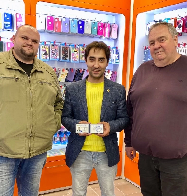 Координатор Калужского городского отделения ЛДПР Олег Челдушкин совместно с координатором первичного отделения по Ленинскому округу Александром Суржиковым вручили членские билеты новым членам партии