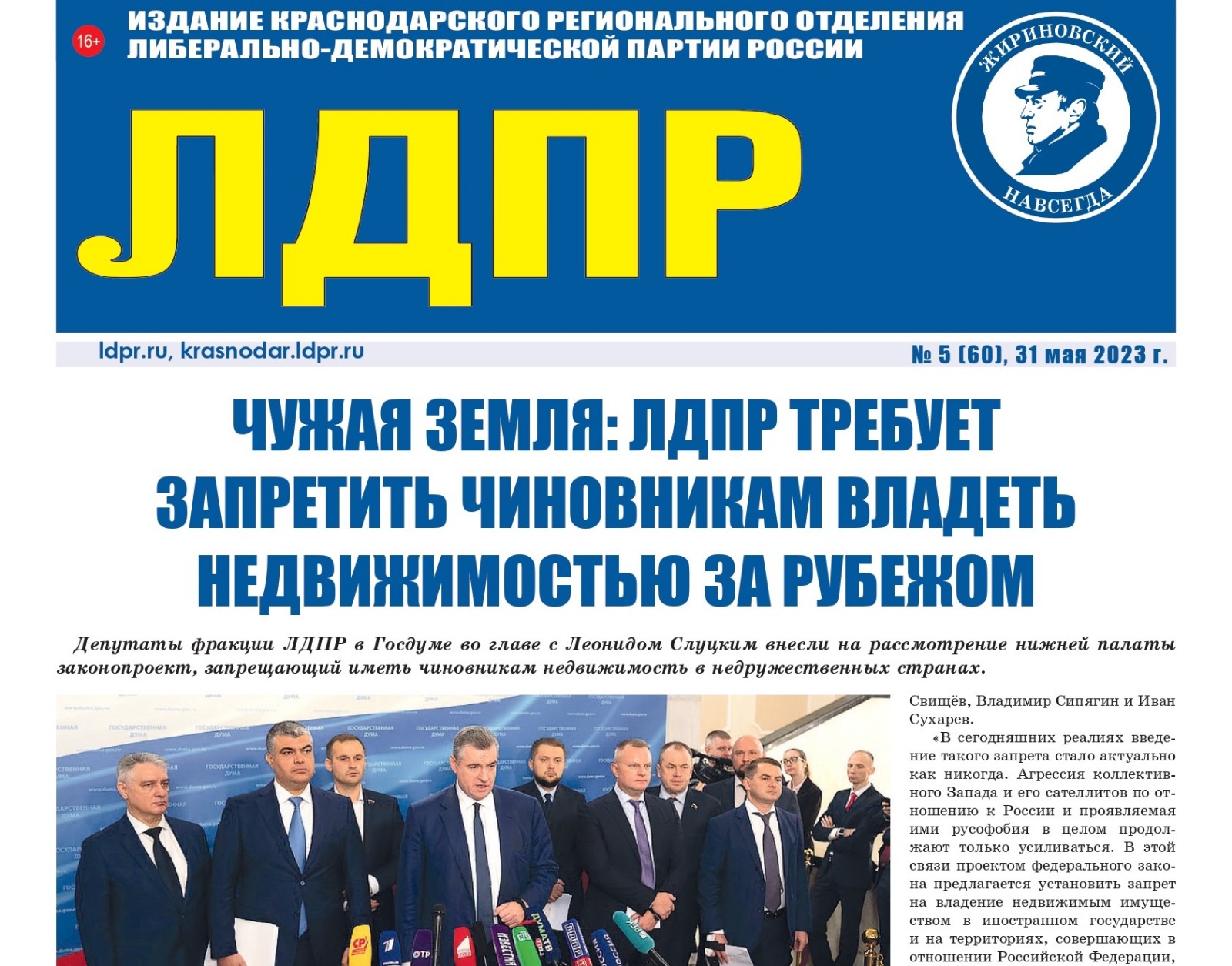 Газета «ЛДПР на Кубани» №5: обзор материалов номера