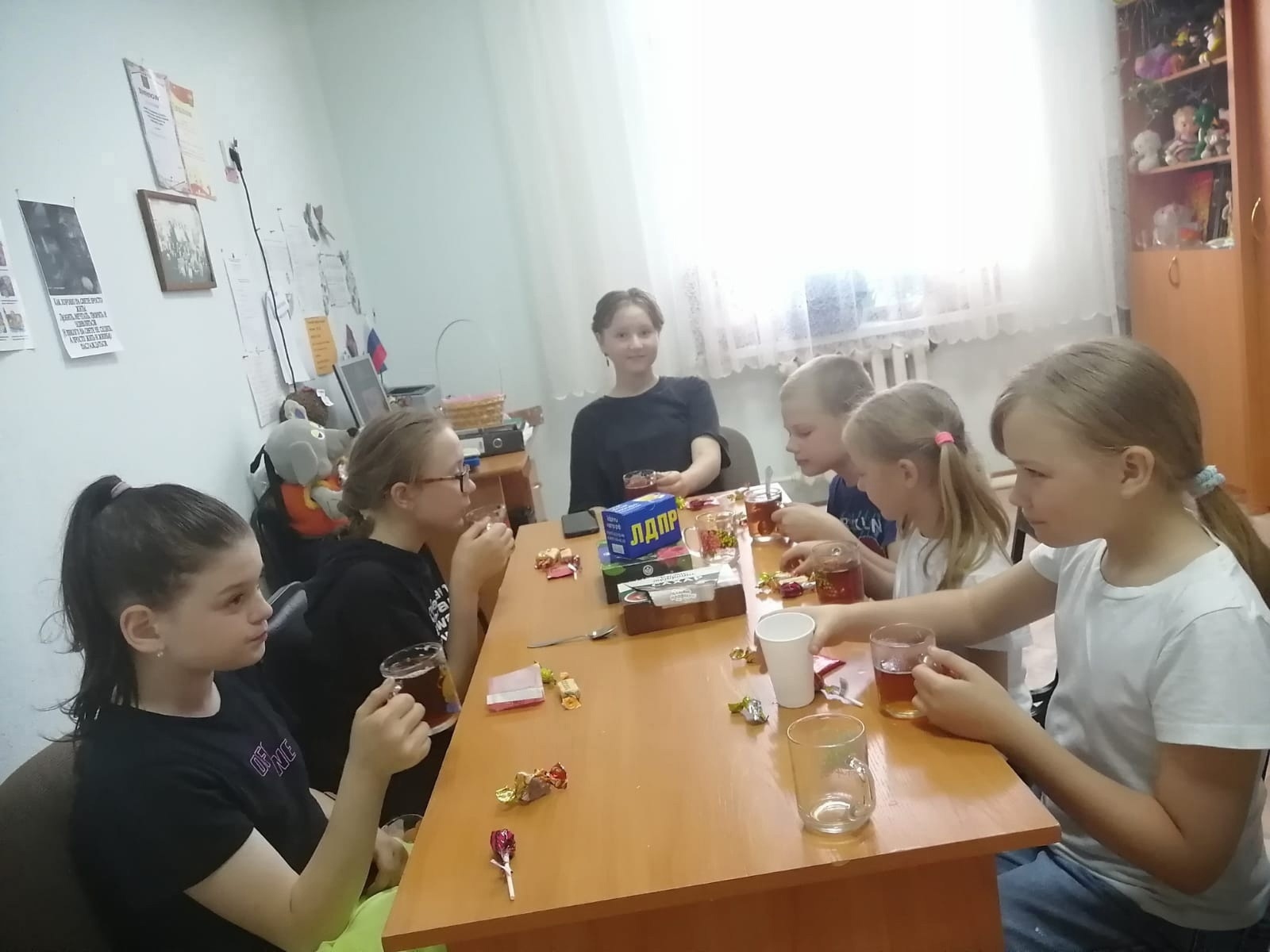 Координатор Сорокинского районного отделения ЛДПР Валентина Великая и местные активисты провели творческий мастер-класс и устроили чаепитие для детей в деревне Новониколаевка в день защиты детей