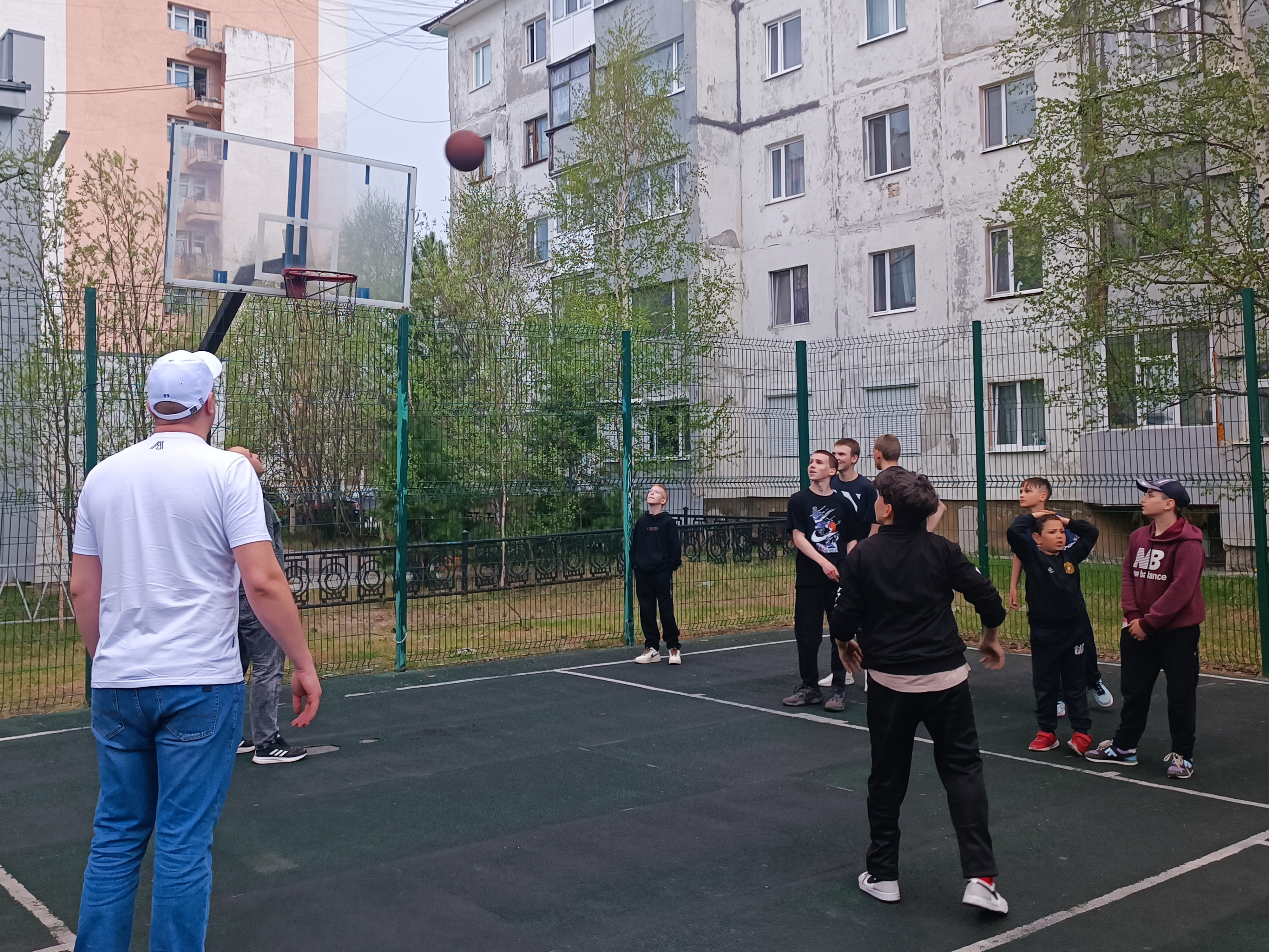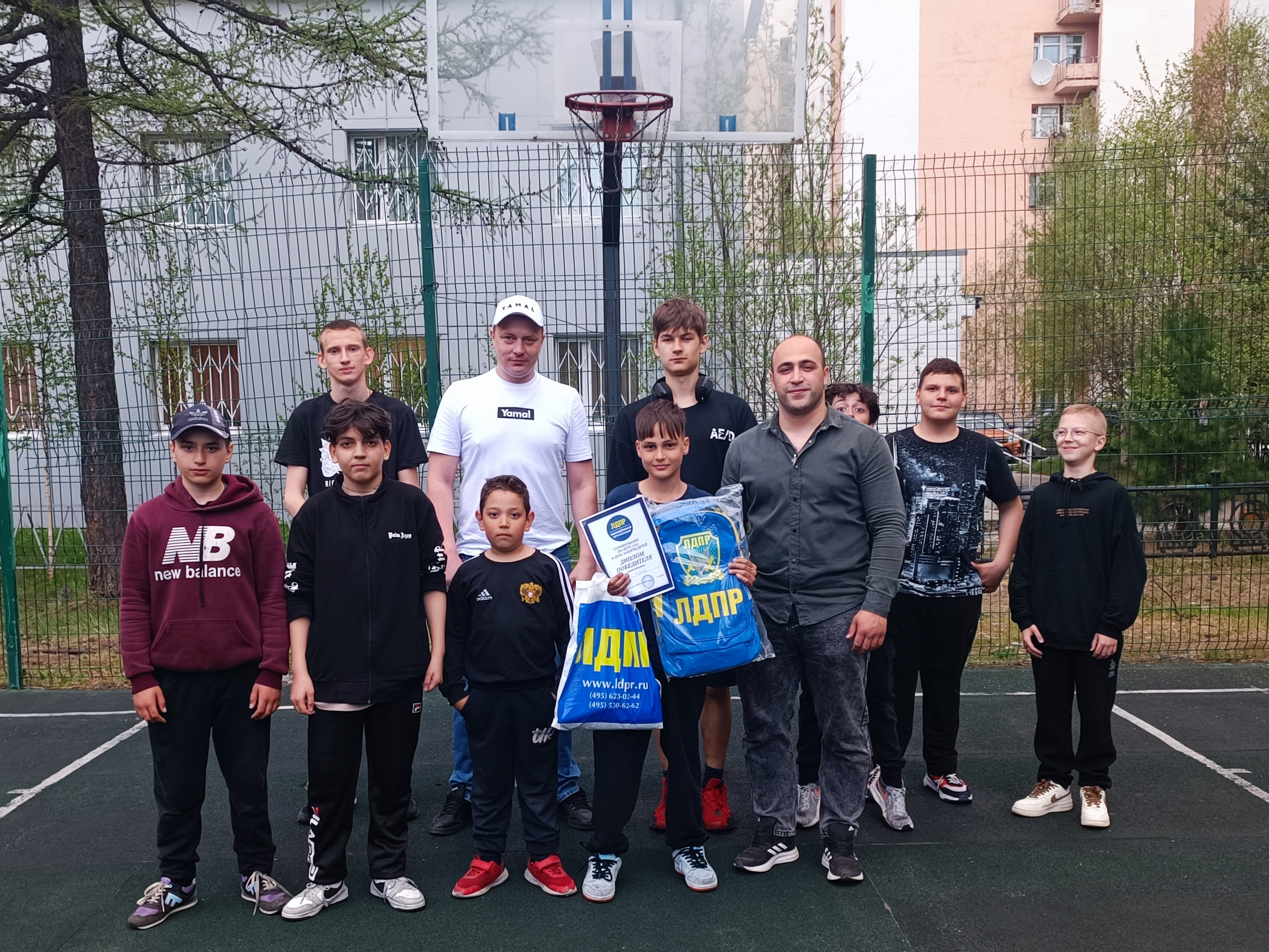 На одной из батскетбольных площадок города Надыма депутат Думы Надымского района Сергей Гудков, руководитель Молодежной организации ЛДПР на Ямале Сергей Алексеев и координатор Надымского отделения ЛДПР Евгений Русалеев провели для молодежи соревнования по игре "тридцать три".