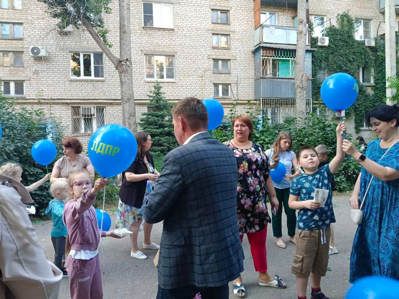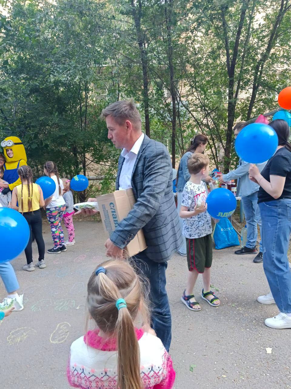 Жители одного из микрорайонов, которые захотели порадовать своих детей, обратились к руководителю Астраханской ЛДПР Тимофею Щербакова. С них была развлекательная программа, с ЛДПР – музыкальное сопровождение, мороженое и воздушные шарики. Некоторые родители наготовили всяких вкусностей и компоты.