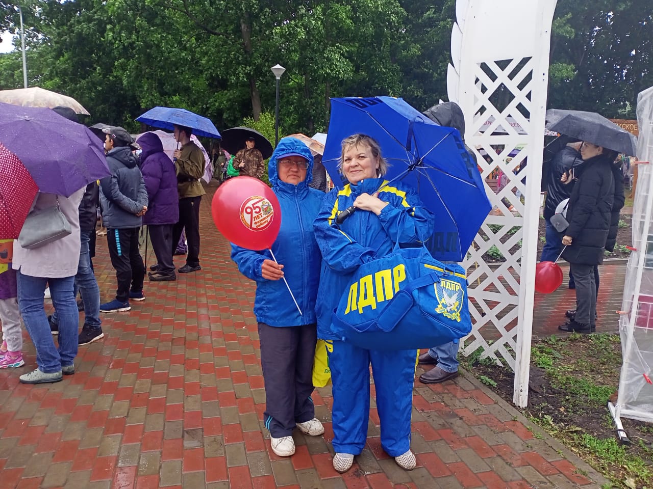 Несмотря на дождливую погоду, гостей на мероприятии было много. Активисты ЛДПР вручили всем участникам праздника подарки.