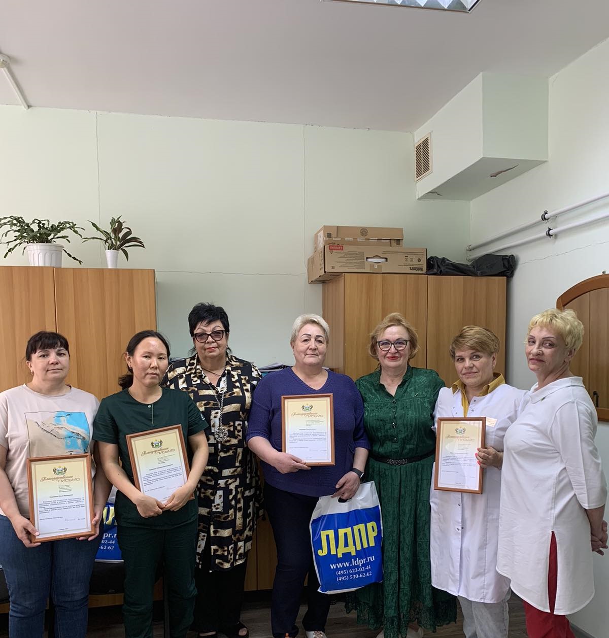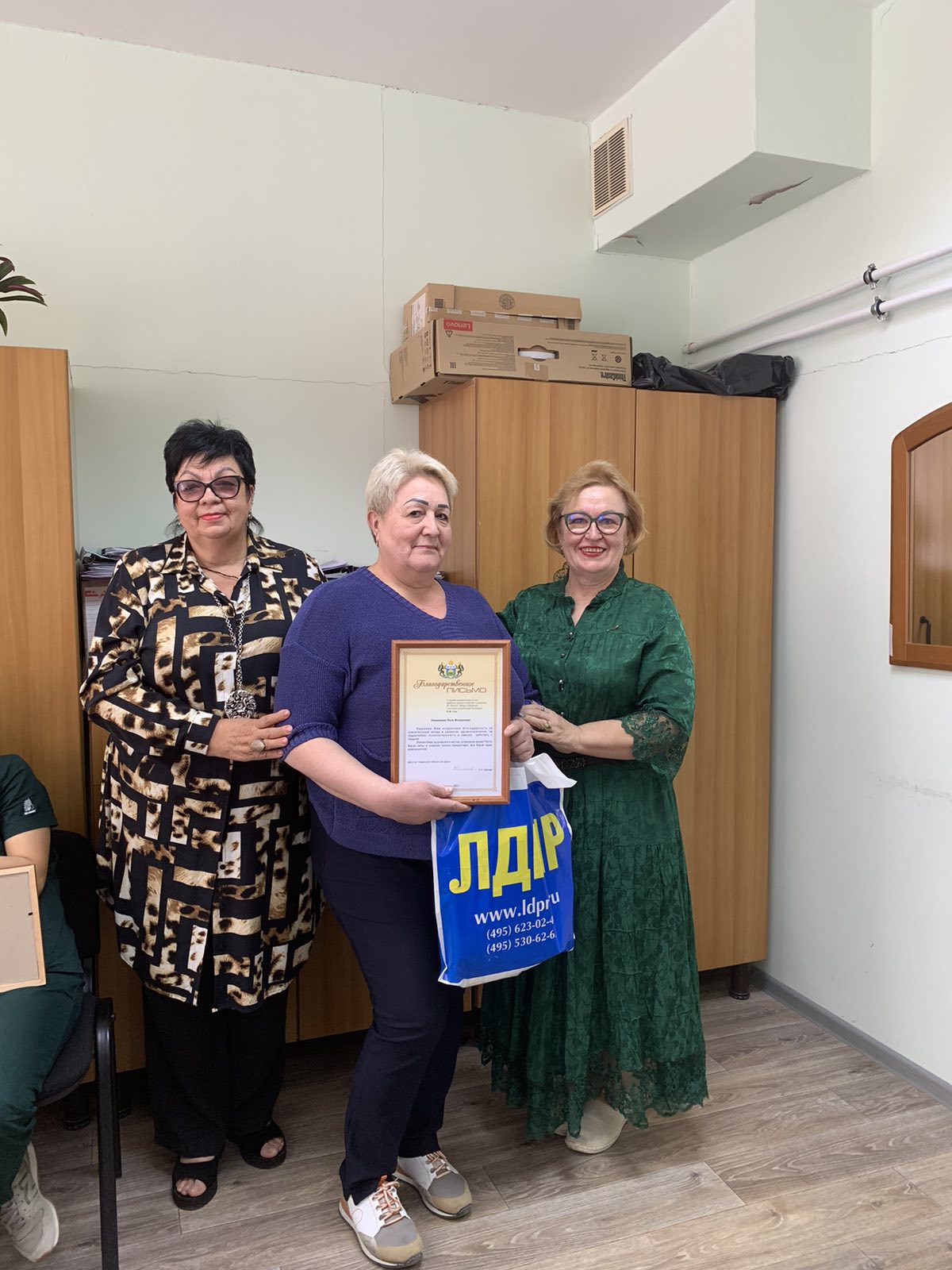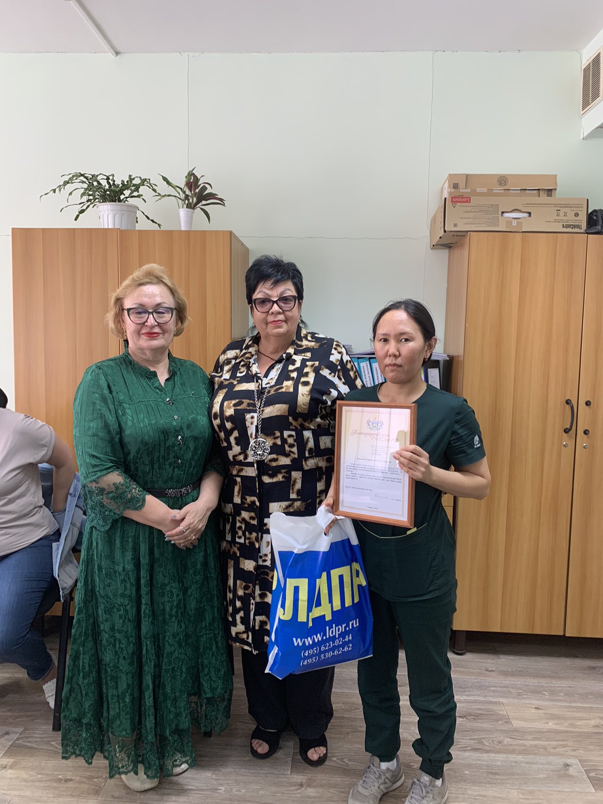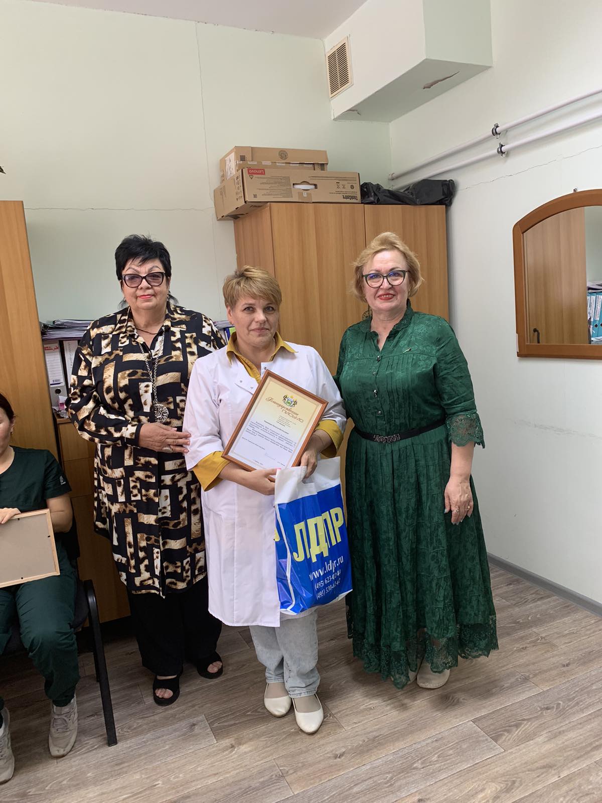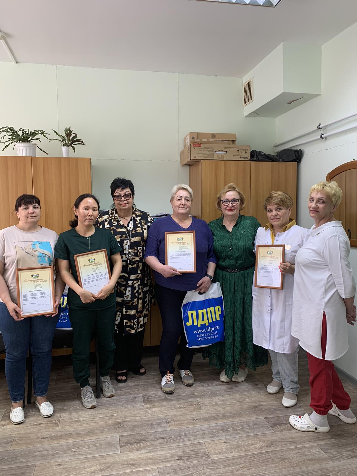 - Здоровья, счастья, благополучия и поменьше пациентов!»- поздравила координатор местного отделения партии Елена Черевач, вручив благодарственные письма и подарки от ЛДПР.