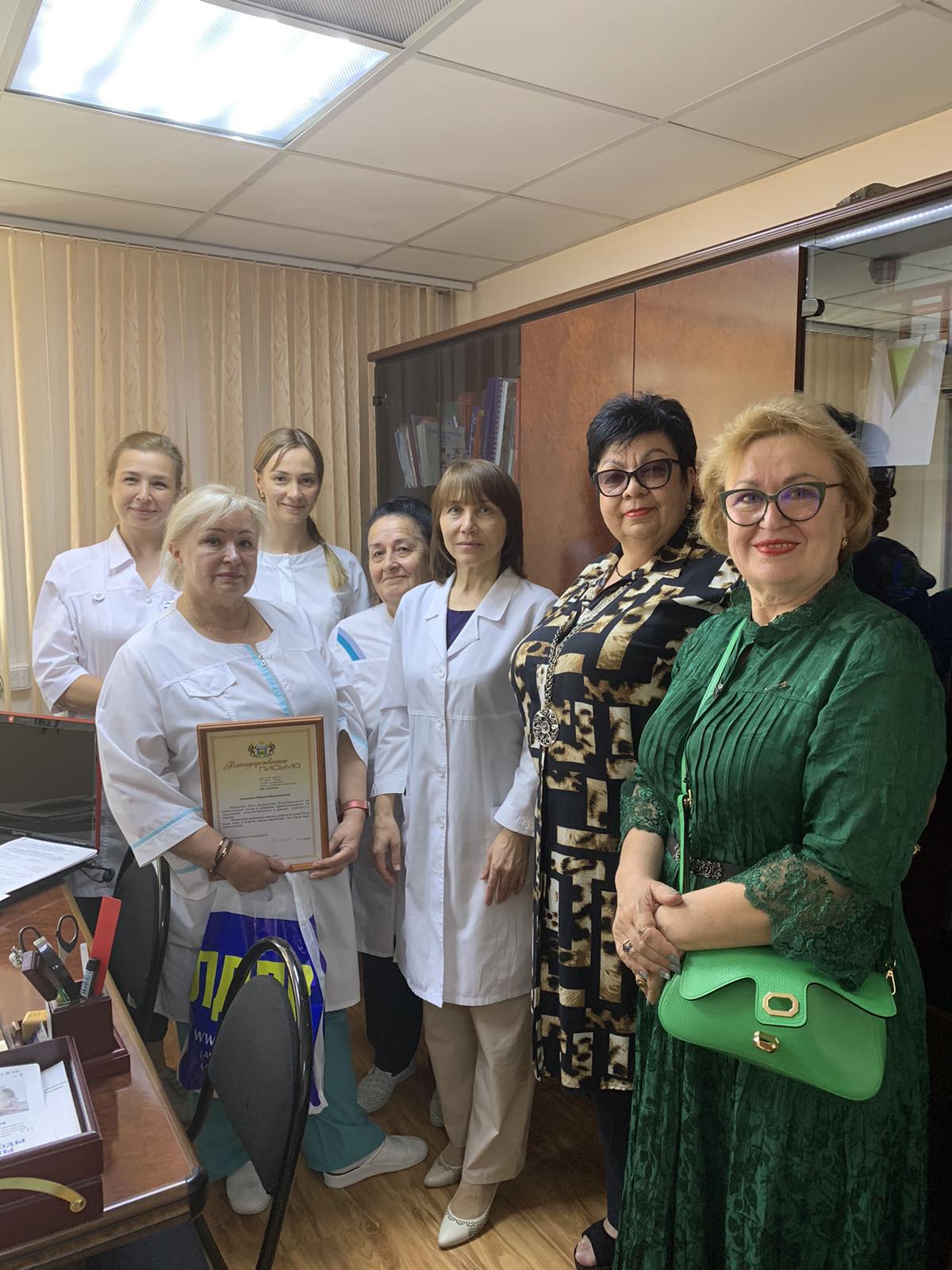 Партийцы вручили благодарственные письма и подарки врачу стоматологической поликлиники и врачам, медсестрам, рентгенлаборанту больницы стационарного лечения.