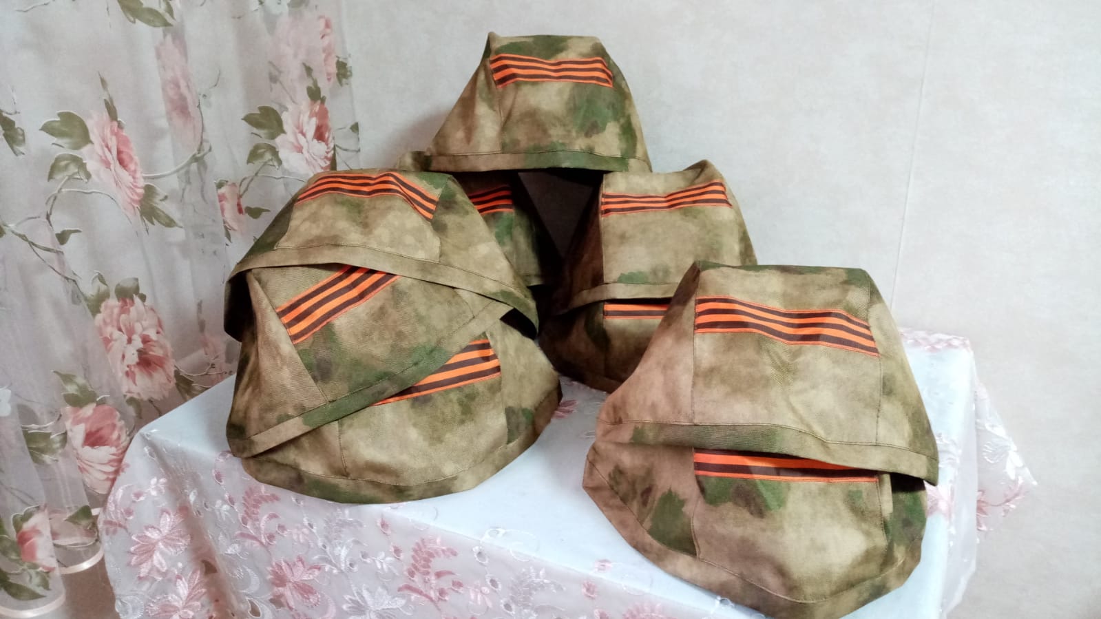 Партийцы из Алтайского края шьют маскировочные чехлы на каски для бойцов СВО