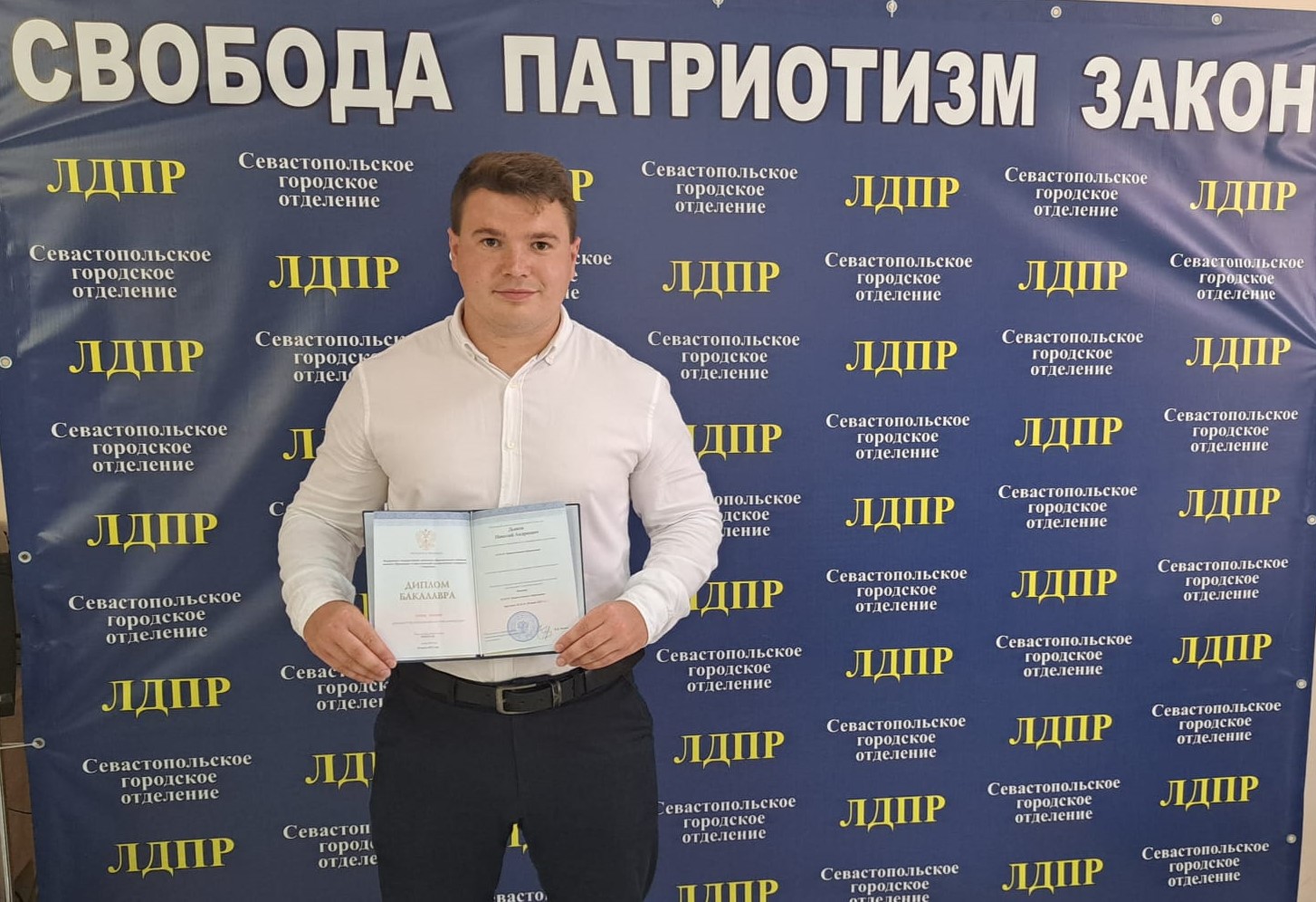 Севастопольское отделение ЛДПР поздравляет члена молодежки Николая Дьякова с успешным окончанием учебы в вузе и получением диплома бакалавра