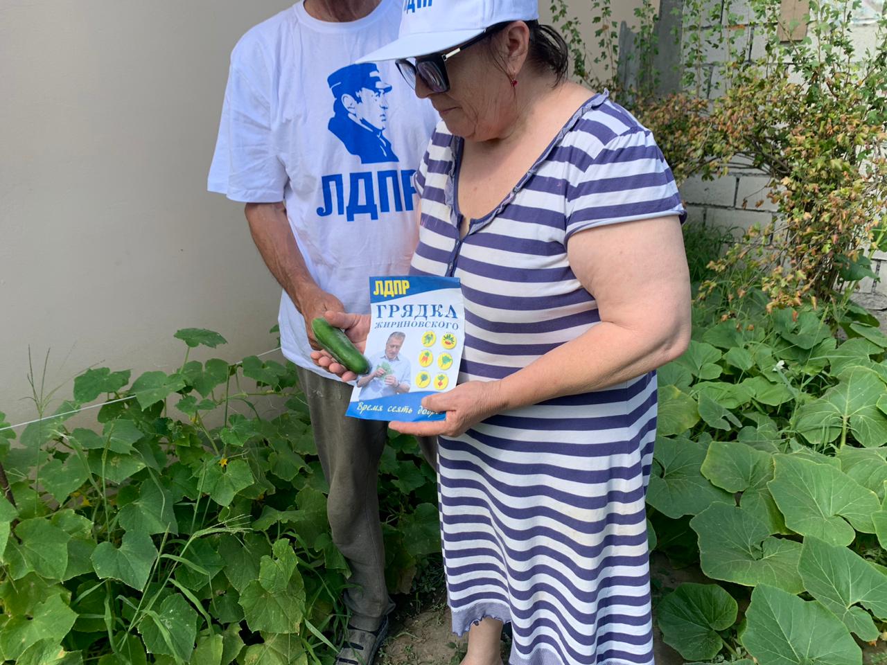 Депутат вручил дачникам подарки о партии – набор семян «Грядка Жириновского», которые были с благодарностью приняты.