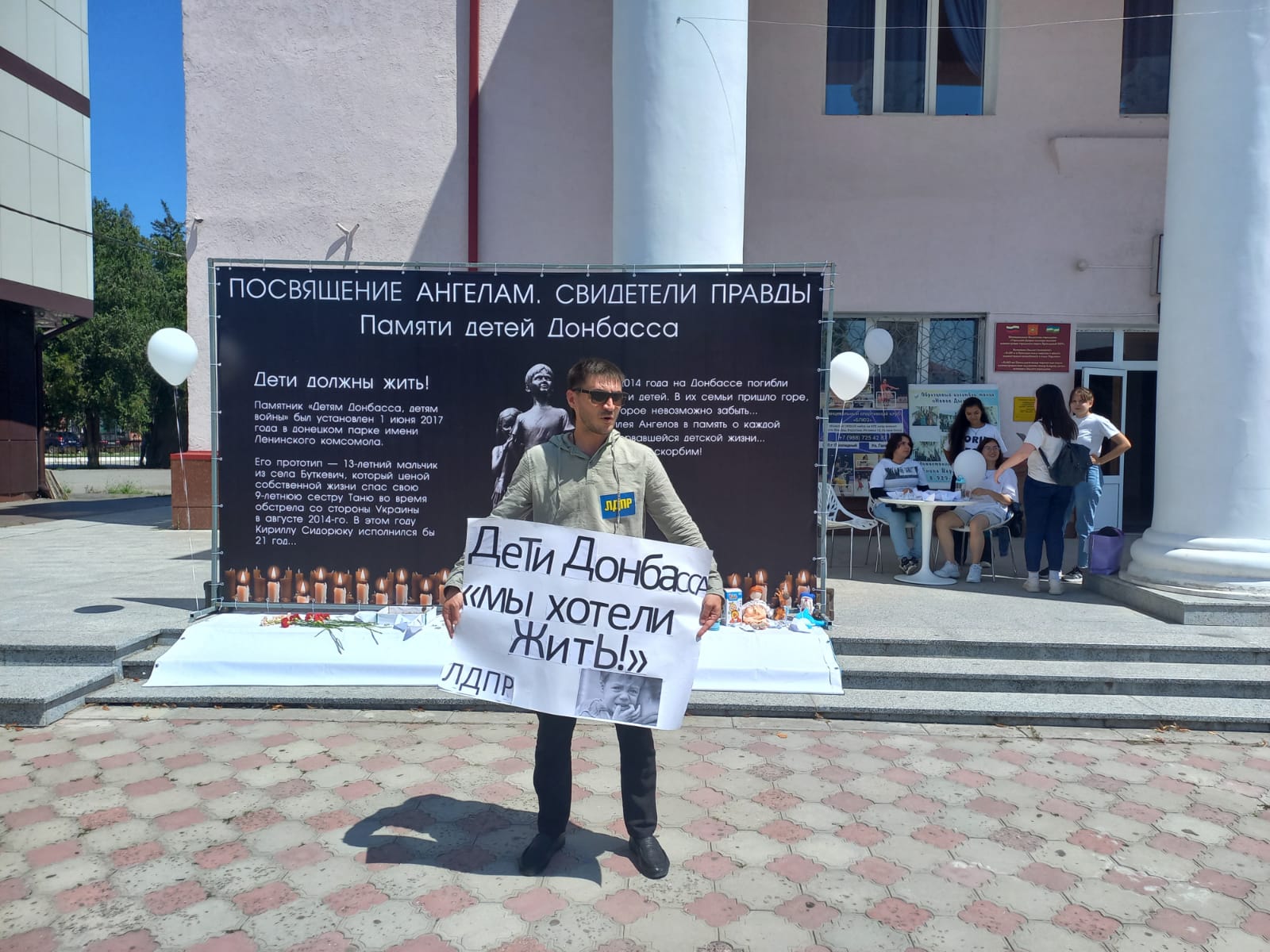 Сотрудники и активисты Кабардино-Балкарского регионального отделения ЛДПР провели одиночные пикеты во всех населённых пунктах республики. Цель акции, привлечение внимания к инициативе ЛДПР о закреплении памятной даты в России - Дня памяти детей погибших от рук украинских террористов.