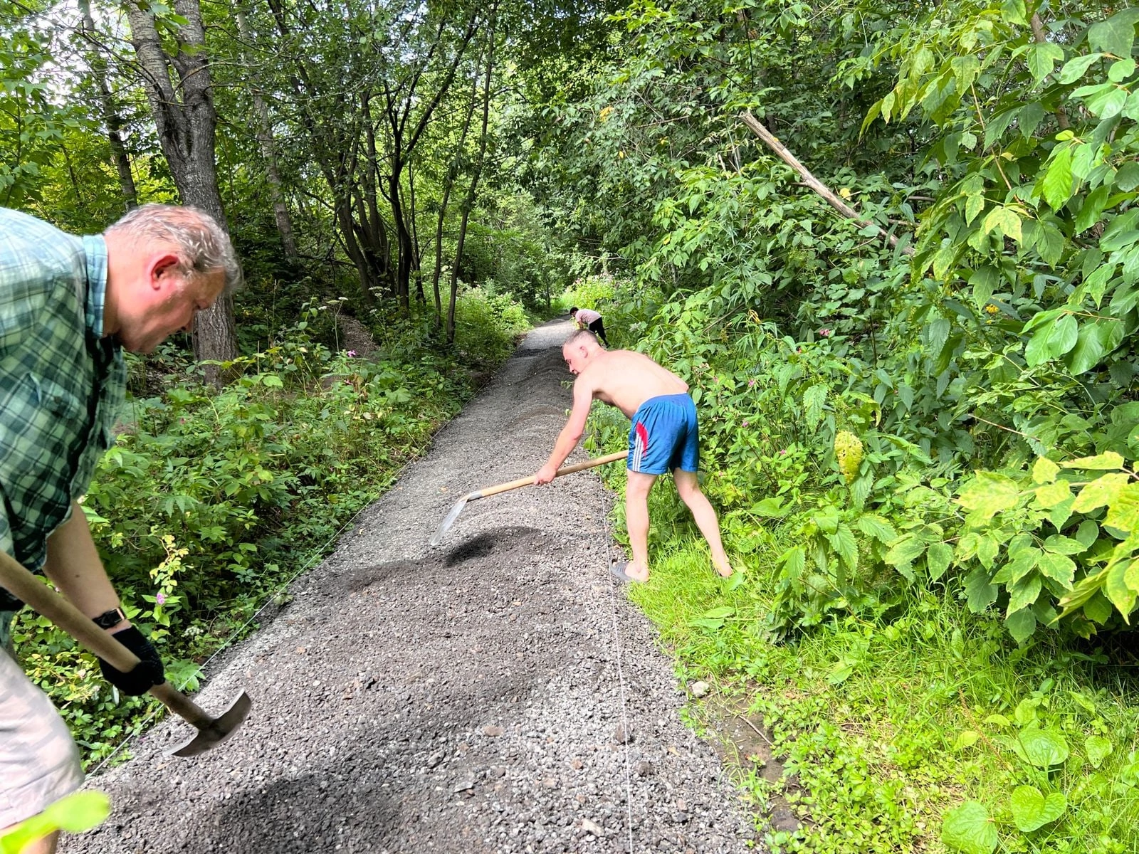 В минувшие выходные волонтёры провели работу по отсыпке пешеходной дорожки асфальтовой крошкой