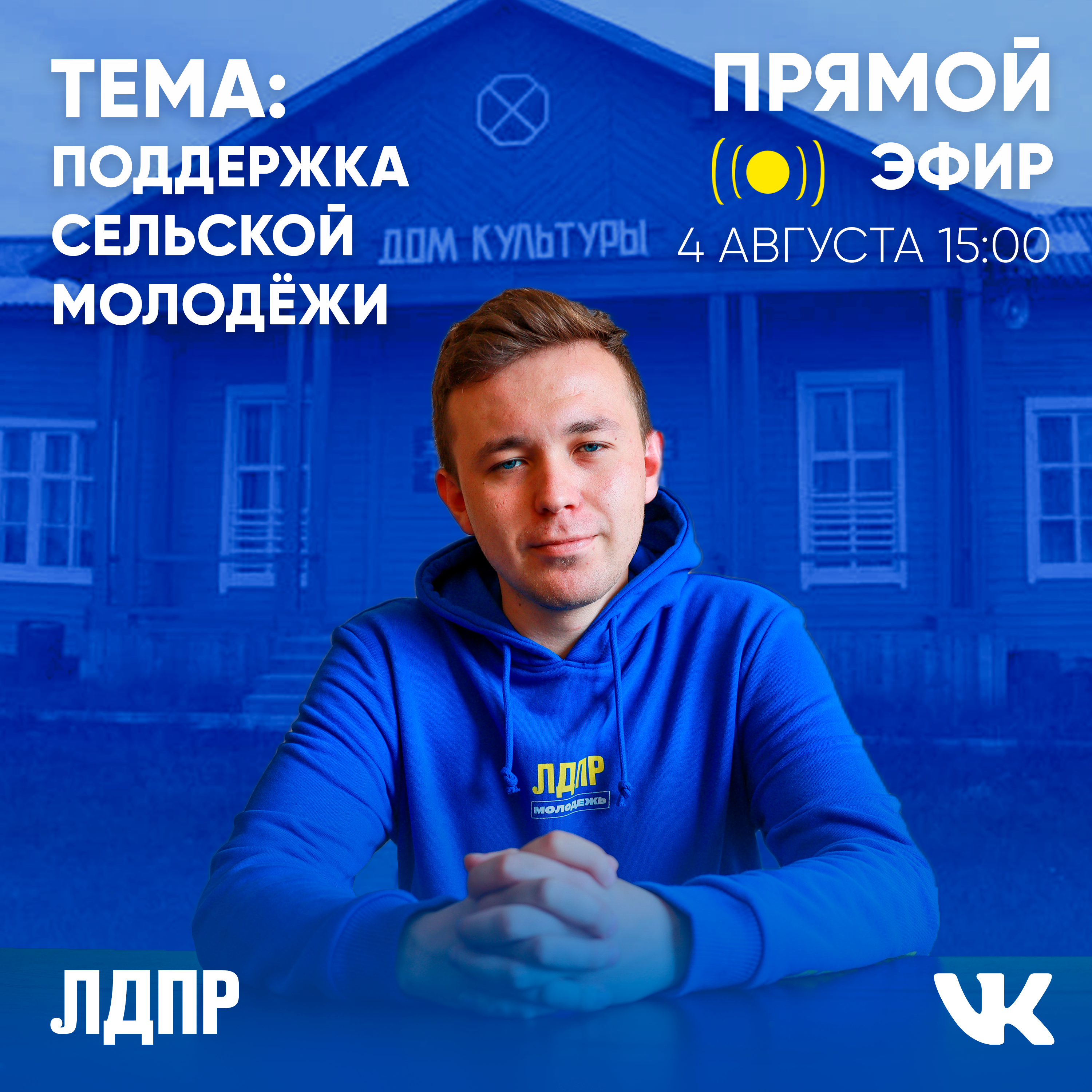 4 августа в Свердловском региональном отделении ЛДПР состоится прямой эфир на тему: «поддержка сельской молодёжи». Спикером выступит помощник координатора по работе с молодёжью Матерухин Максим