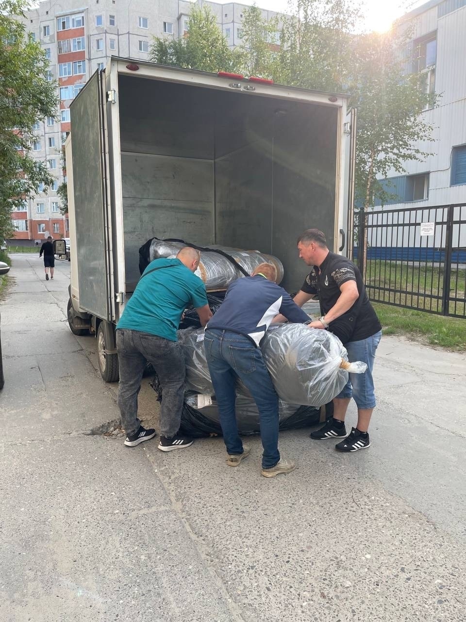 Активисты Молодёжной организации ЛДПР Сергей Алексеев, Иван Радченко и Сергей Овсиенко помогли в доставке и погрузке/разгрузке тяжелого материала. Депутат Думы Надымского района Сергей Гудков координировал данное мероприятие от подачи заявки на финансирование до выгрузки материалов в мастерскую.