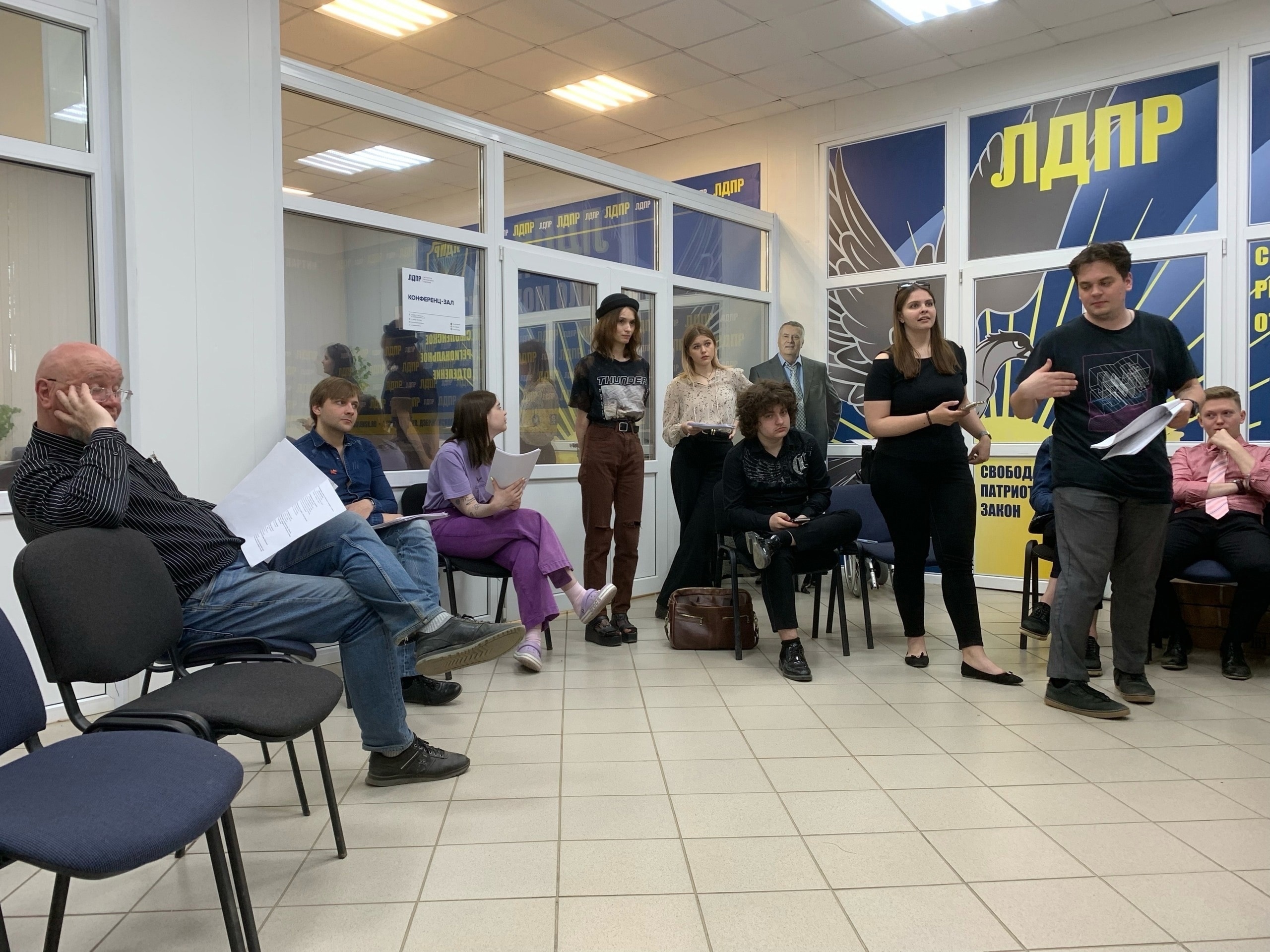 «Зеркало» и ЛДПР в дружбе довольно давно. Вместе воплощали проект «Театр для всех» в райцентрах Смоленщины, показывая спектакли «Мышеловка для князя», «Чацкий. Возвращение в Москву». На площадке Смоленского штаба партии артисты театра проводили репетиции.