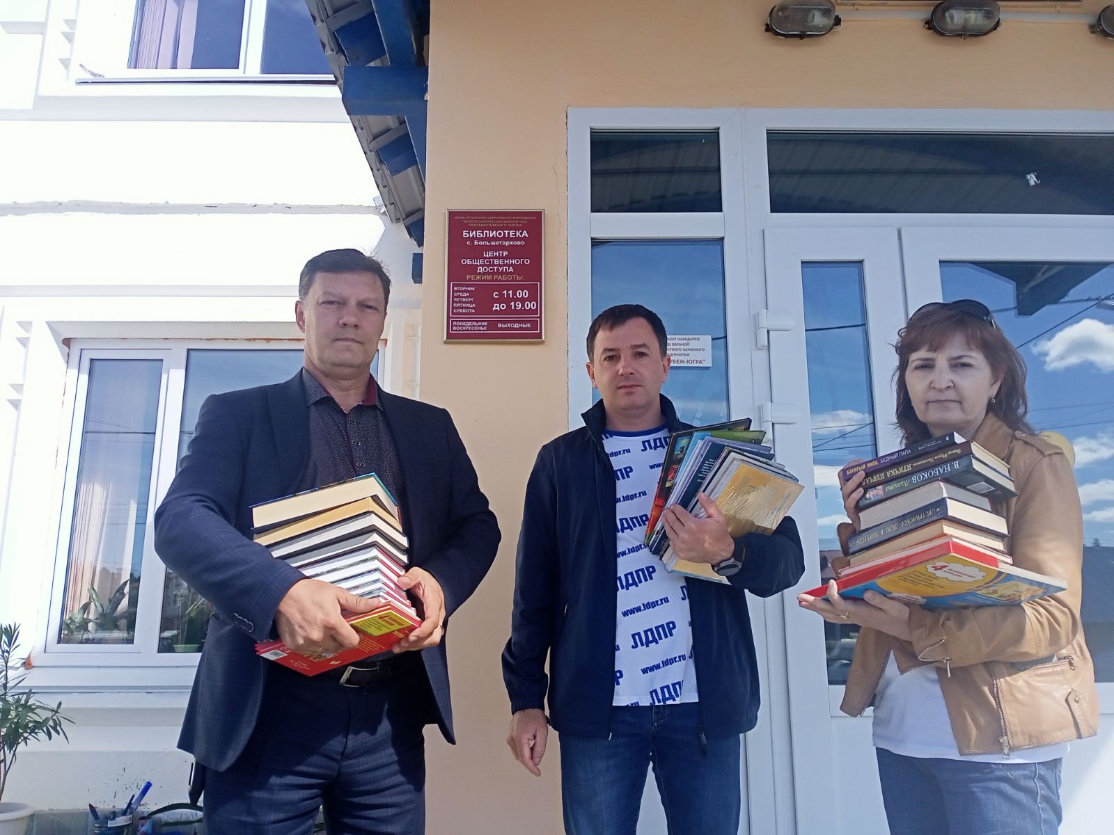 Сотрудники аппарата Ханты-Мансийского регионального отделения ЛДПР Евгений Данников и Елена Ведерина совместно с координатором первичного отделения № 2 Максимом Поповым и активистом партии Еленой Пыжовой посетили с. Большетархово Нижневартовского района. В рамках объявленной благотворительной акции по сбору книг для сельской молодежи привезли и передали в сельскую библиотеку книги.