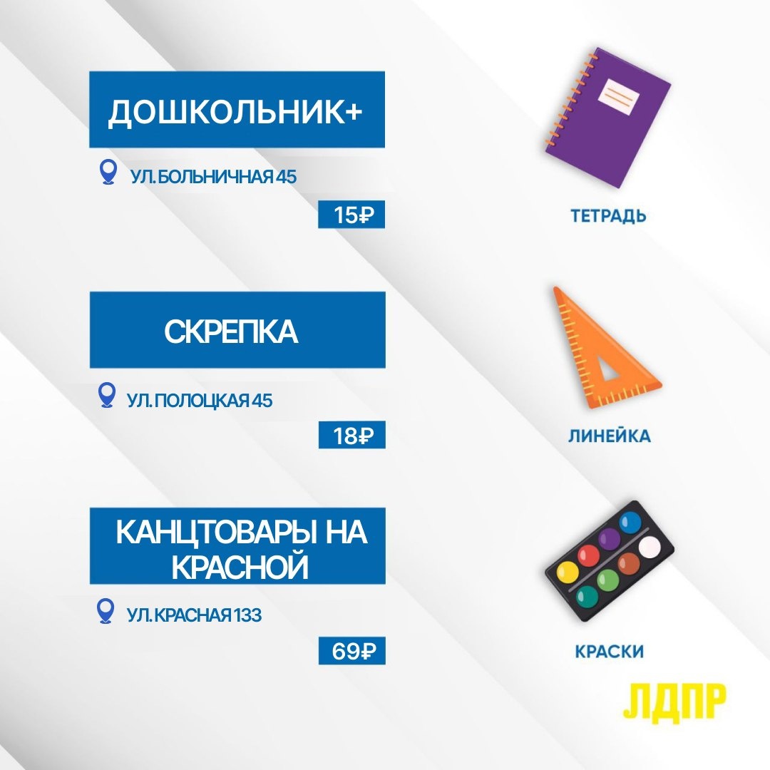 Активисты Калининградского регионального отделения ЛДПР в преддверии нового учебного года провели рейды по магазинам канцтоваров и одежды с целью найти самые низкие ценники.