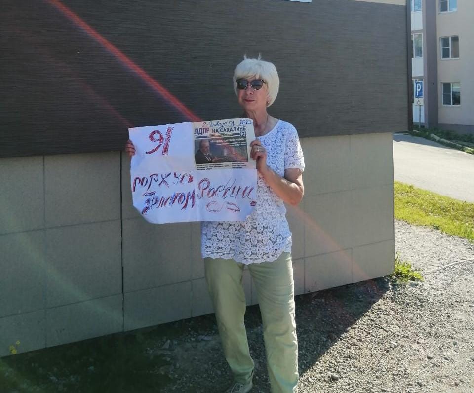 На Сахалине прошли одиночные пикеты приуроченные ко Дню Государственного флага