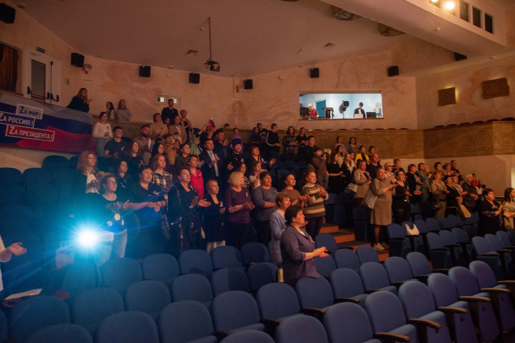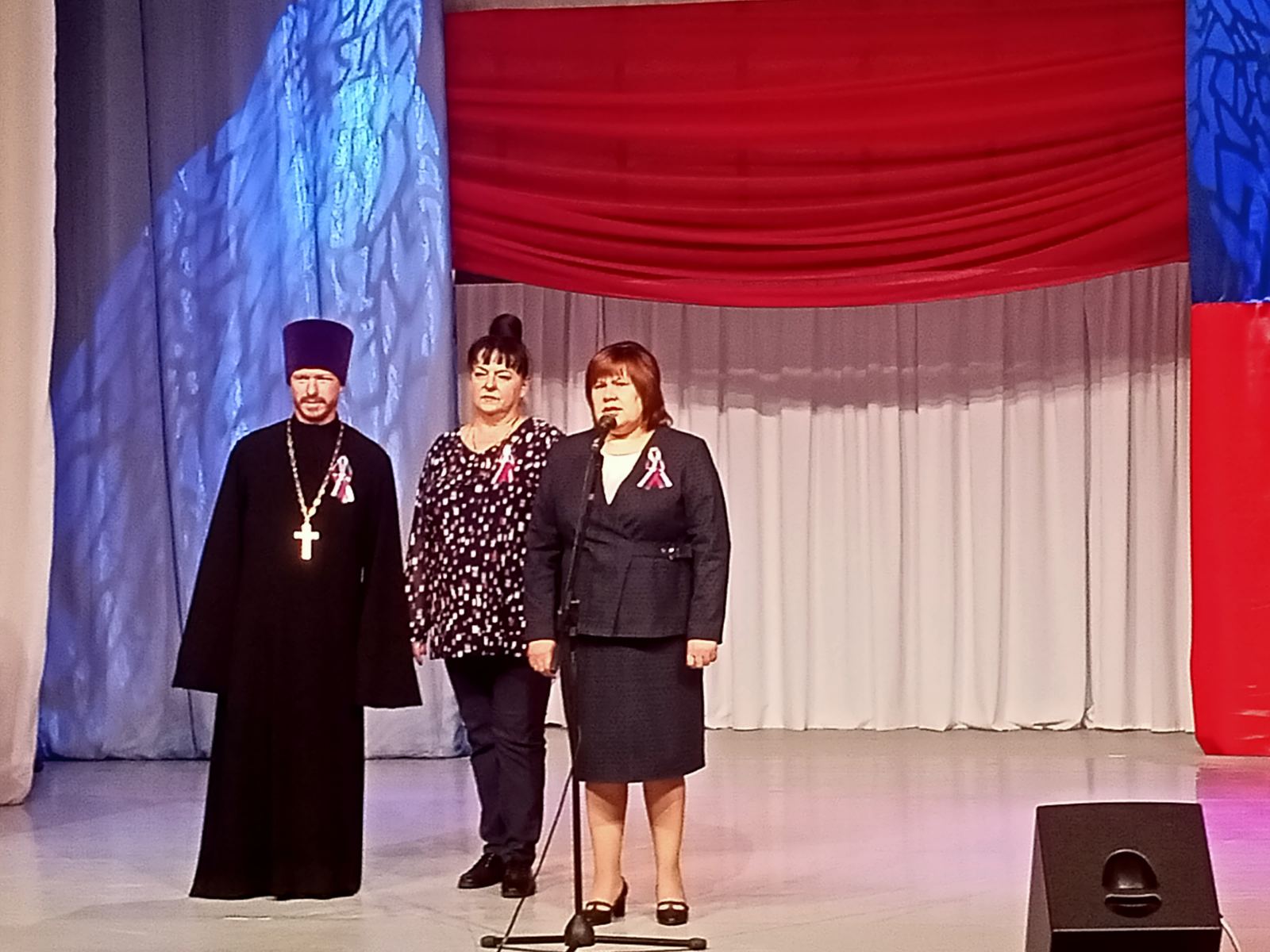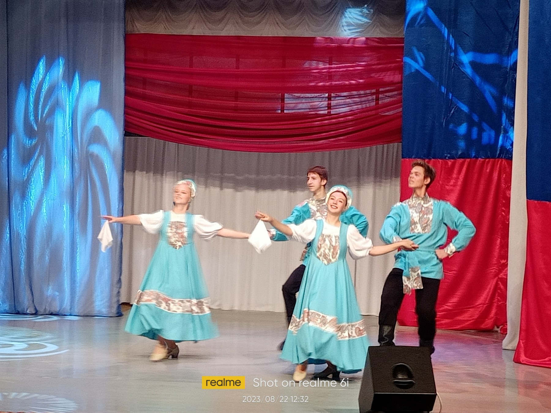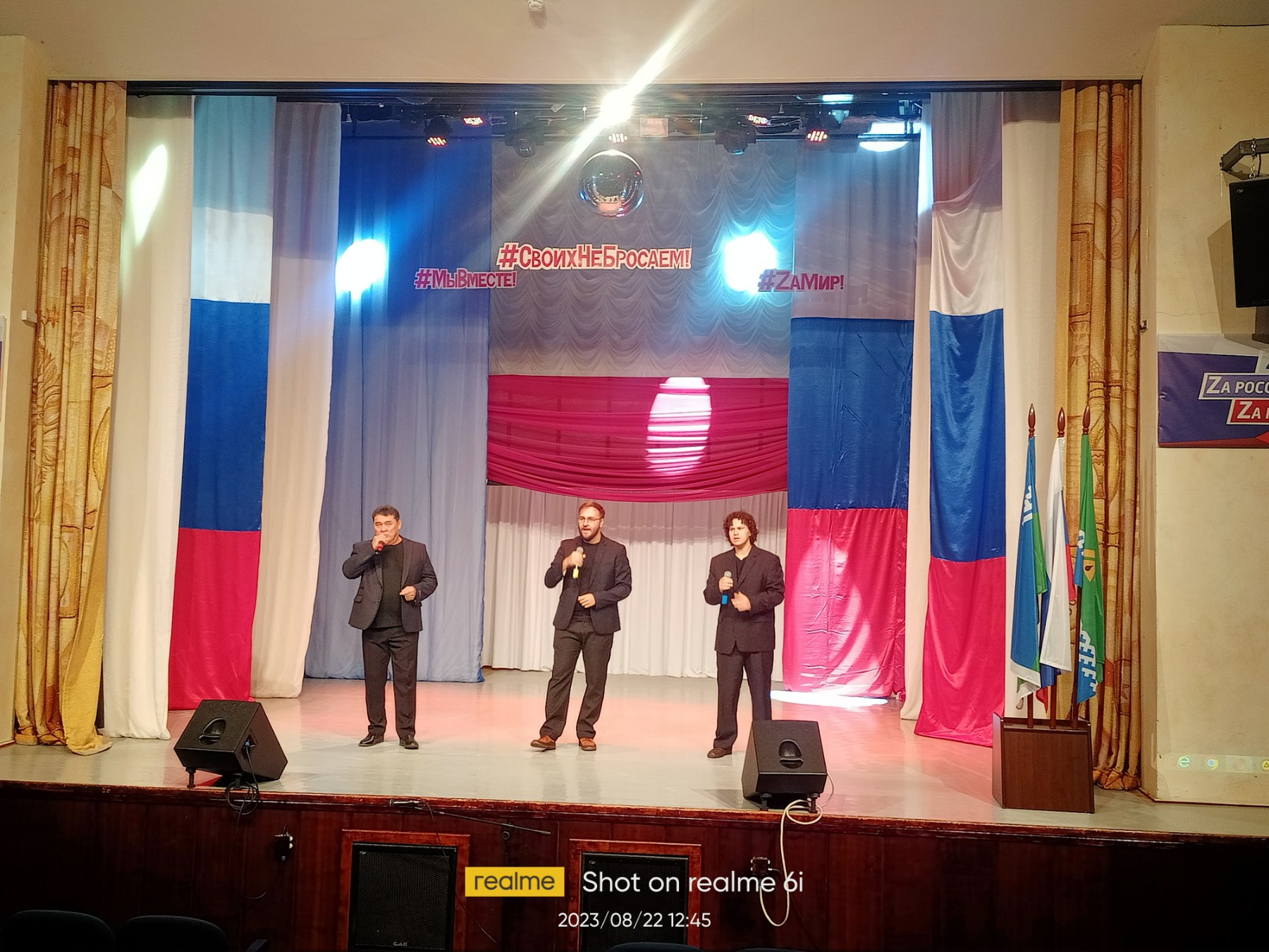 После возложения цветов посетили ДК "Арлекино". Здесь проходило праздничное мероприятие, митинг - концерт просвещенный Дню Государственного флага РФ.
