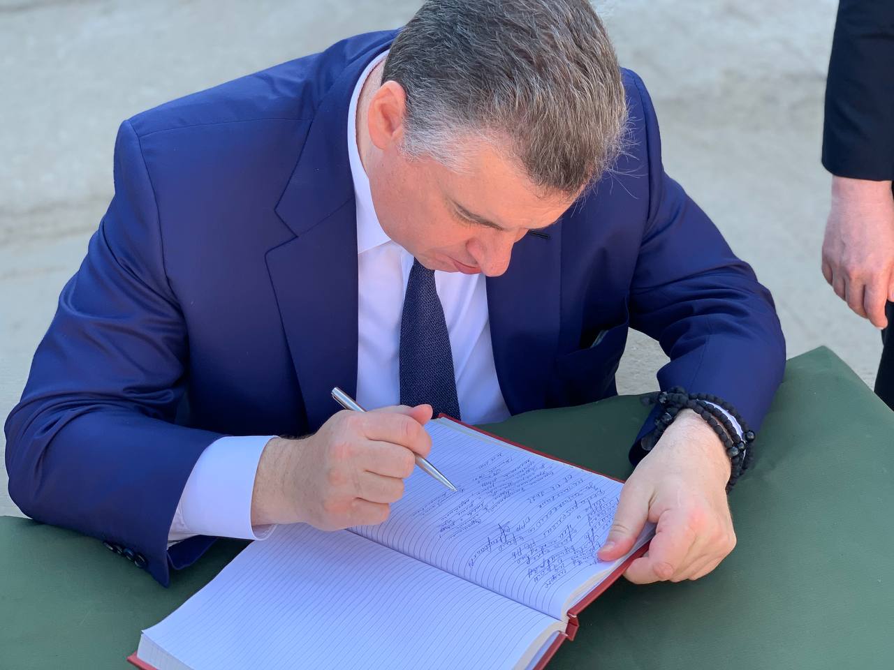 Качество работы и важность предприятия для страны отметил и лидер ЛДПР Леонид Слуцкий, парламентарий оставил свой отзыв в книге почетных гостей.