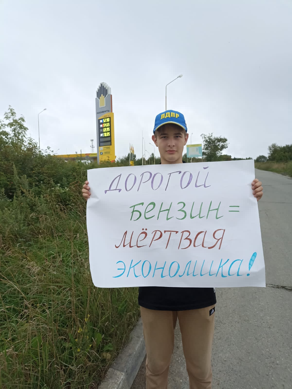 Члены молодежной организации Сахалинского регионального отделения ЛДПР провели одиночные пикеты на заправках острова.