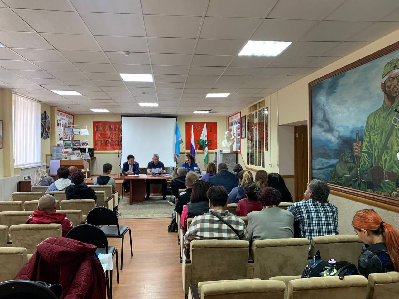 На встрече каждый получил по атрибутике, партийную одежду и тетради.
