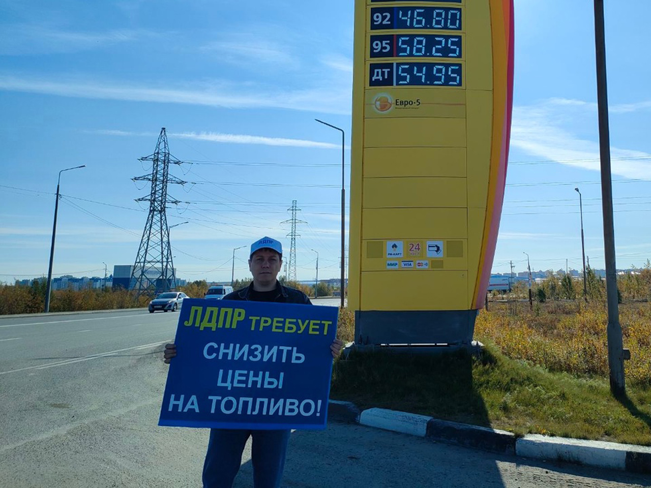 Чтобы заявить о позиции ЛДПР и привлечь внимание органов власти активисты Ямало-Ненецкого регионального отделения партии провели одиночные пикеты по всему региону. Партийцы вышли на пикеты с лозунгом «ЛДПР требует снизить цены на топливо!»