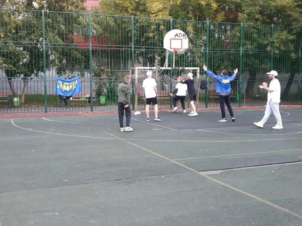 На спортивной площадке, расположенной у дома по улице 50 лет ВЛКСМ, 91, прошел товарищеский баскетбольный матч, в котором приняли участие члены молодежной организации Тюменского отделения ЛДПР и местные жители.