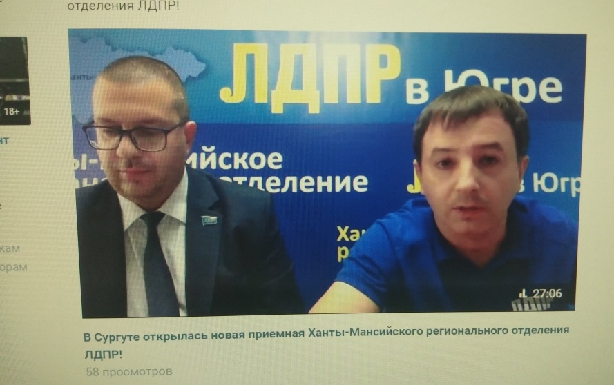 В Сургуте открылась новая общественная приемная депутатов ЛДПР и Центр для поддержки участников СВО и их семей. Итоги работы депутатов фракции за первое полугодие текущего года в Думе Югры седьмого созыва – темы очередного прямого эфира в социальной сети ВК Ханты-Мансийского регионального отделения партии.