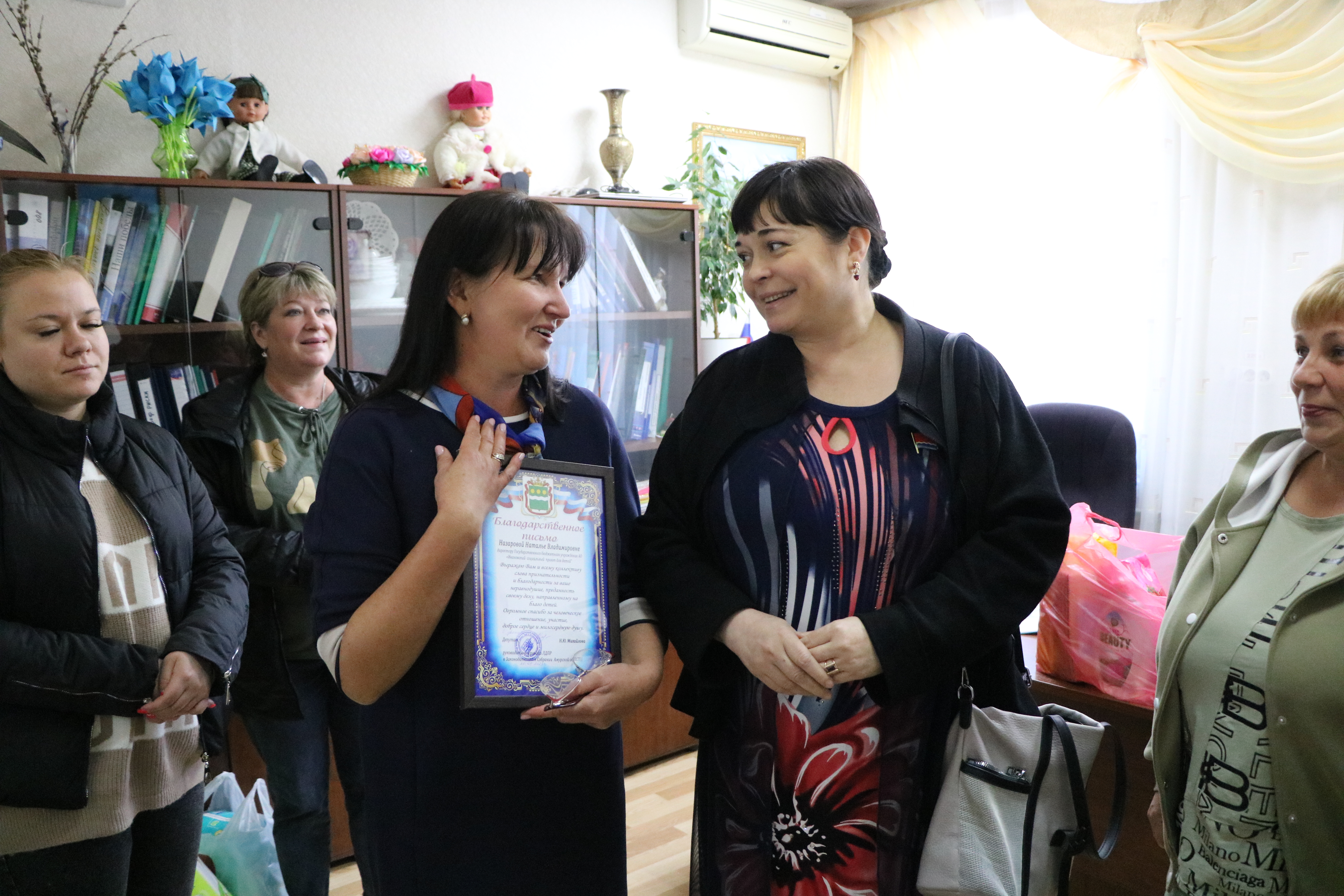 В этой поездке к волонтерам присоединилась и руководитель фракции ЛДПР в Законодательном Собрании Амурской области Наталья Михайлова. Нужные всегда канцелярские принадлежности были также привезены вместе с представителем партийной «молодёжки».