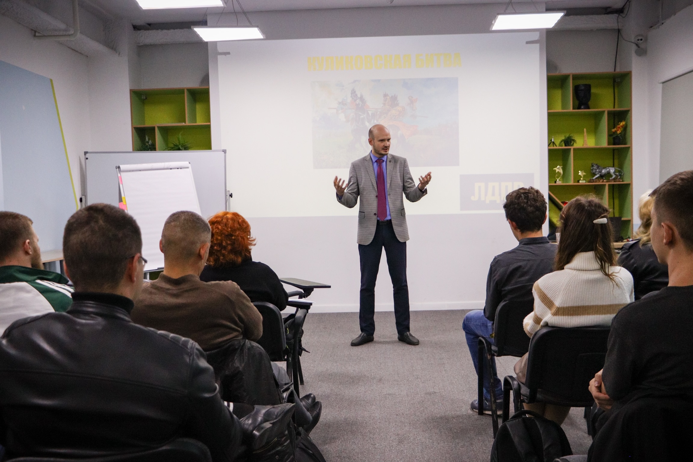 В рамках празднования Дня российской государственности, в коворкинг-центре «FreePeople», состоялась лекция «Зарождение российской государственности». Организовал и провел встречу заместитель координатора Свердловского регионального отделения ЛДПР Антон Безденежных