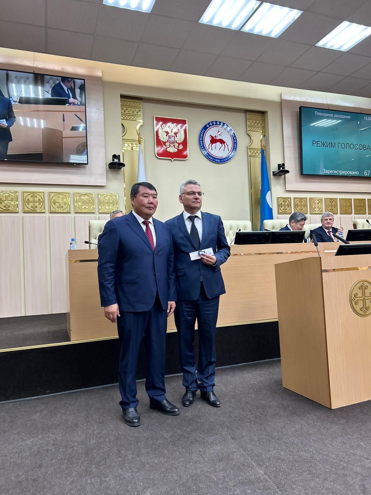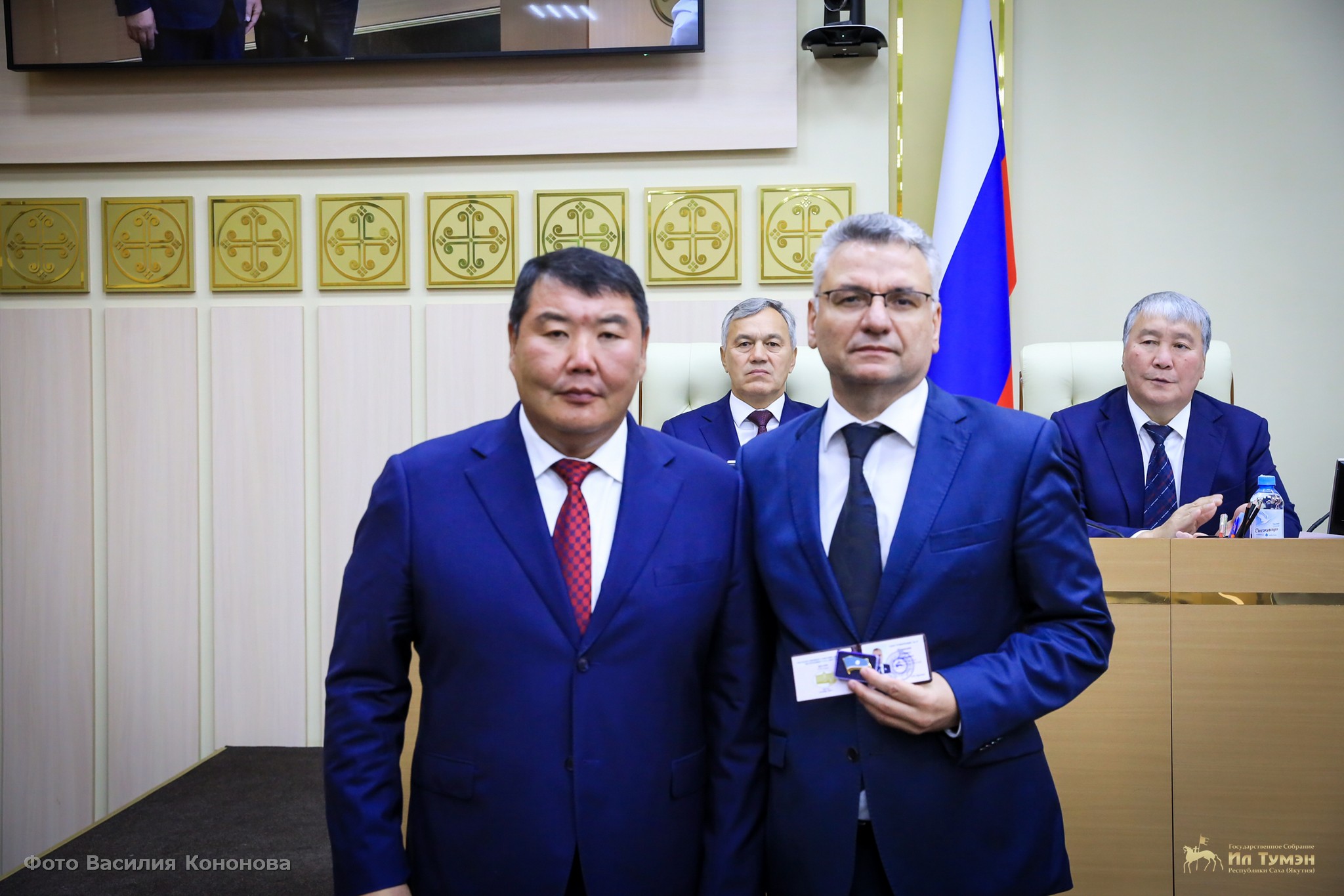 Сегодня, на первом пленарном заседании Государственного Собрания (Ил Тумэн) Республики Саха (Якутия) 7-го созыва, лидер регионального отделения ЛДПР Гаврил Парахин получил мандат и значок народного депутата Ил Тумэн