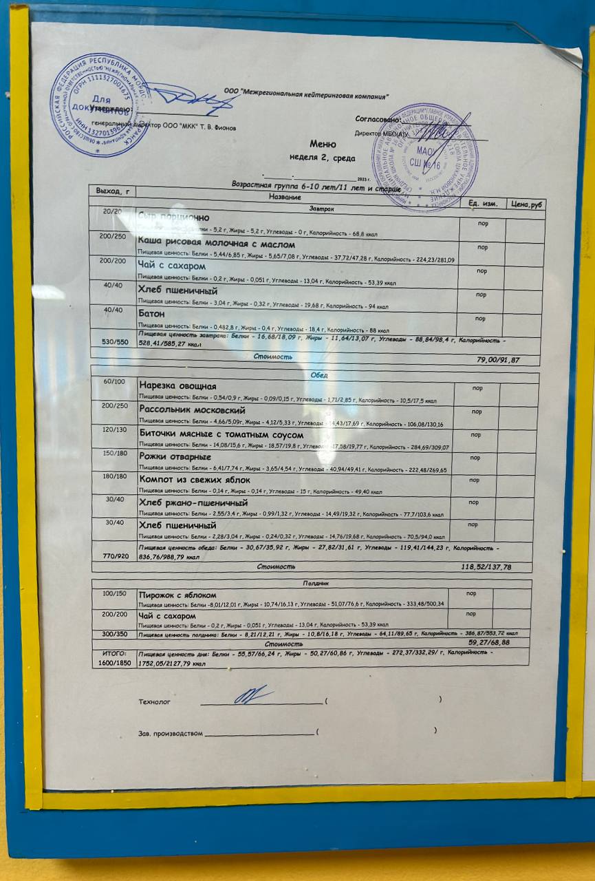 ? Хлеба в контрольном блюде нет, а в меню заявлен вес меньше положенного по санитарным нормам.