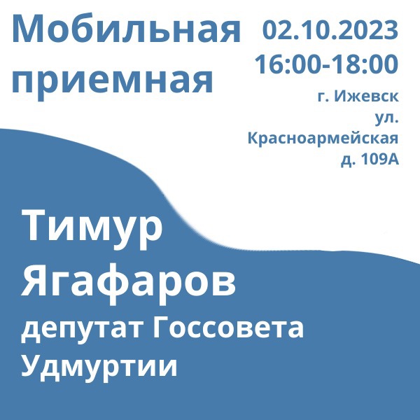 Уважаемые жители Первомайского района! Вновь начинает работу мобильная приемная Тимура Ягафарова!
