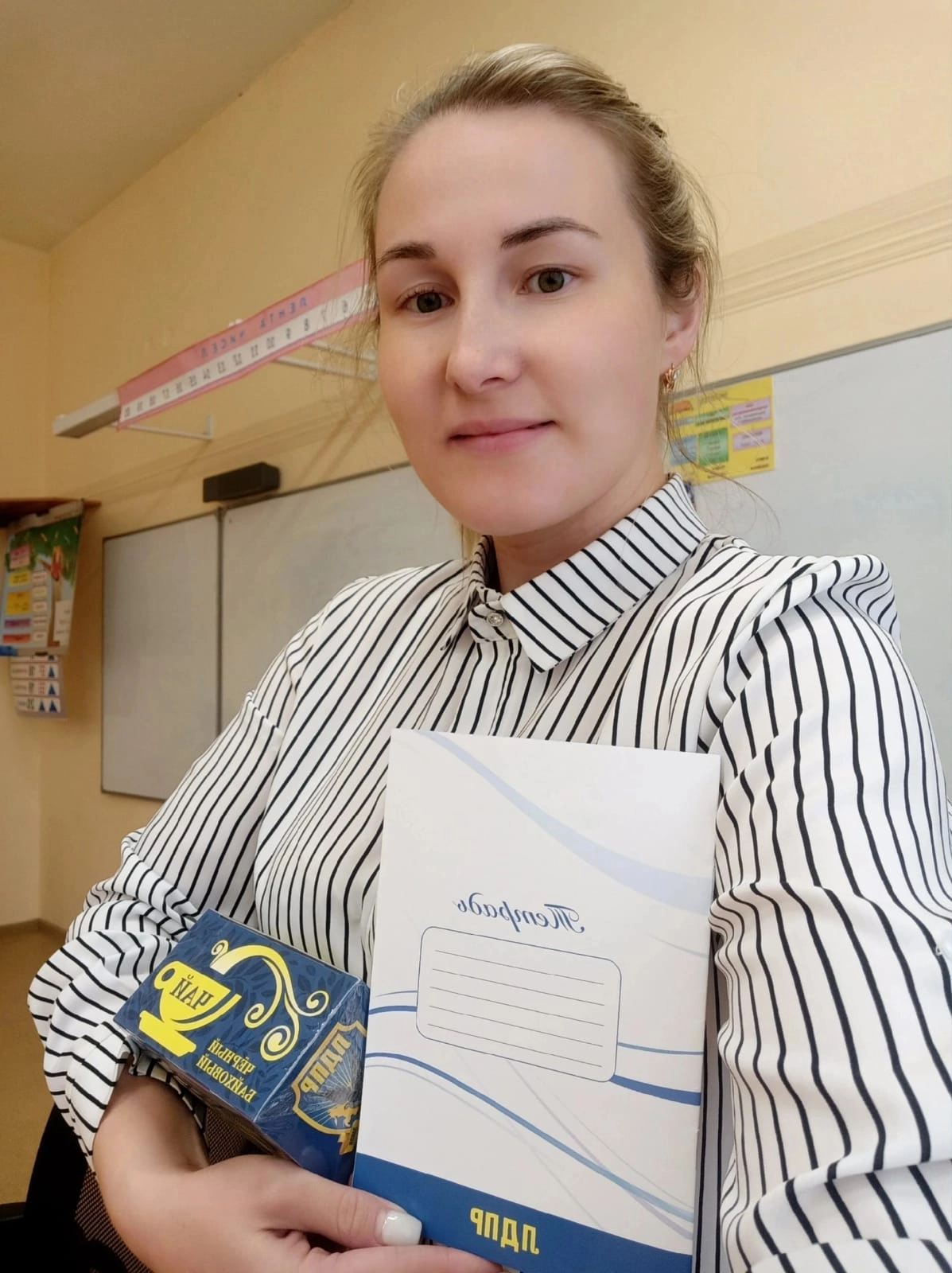 Представитель партии поблагодарил педагогический коллектив за добросовестный труд и подарил фирменные подарки от ЛДПР.
