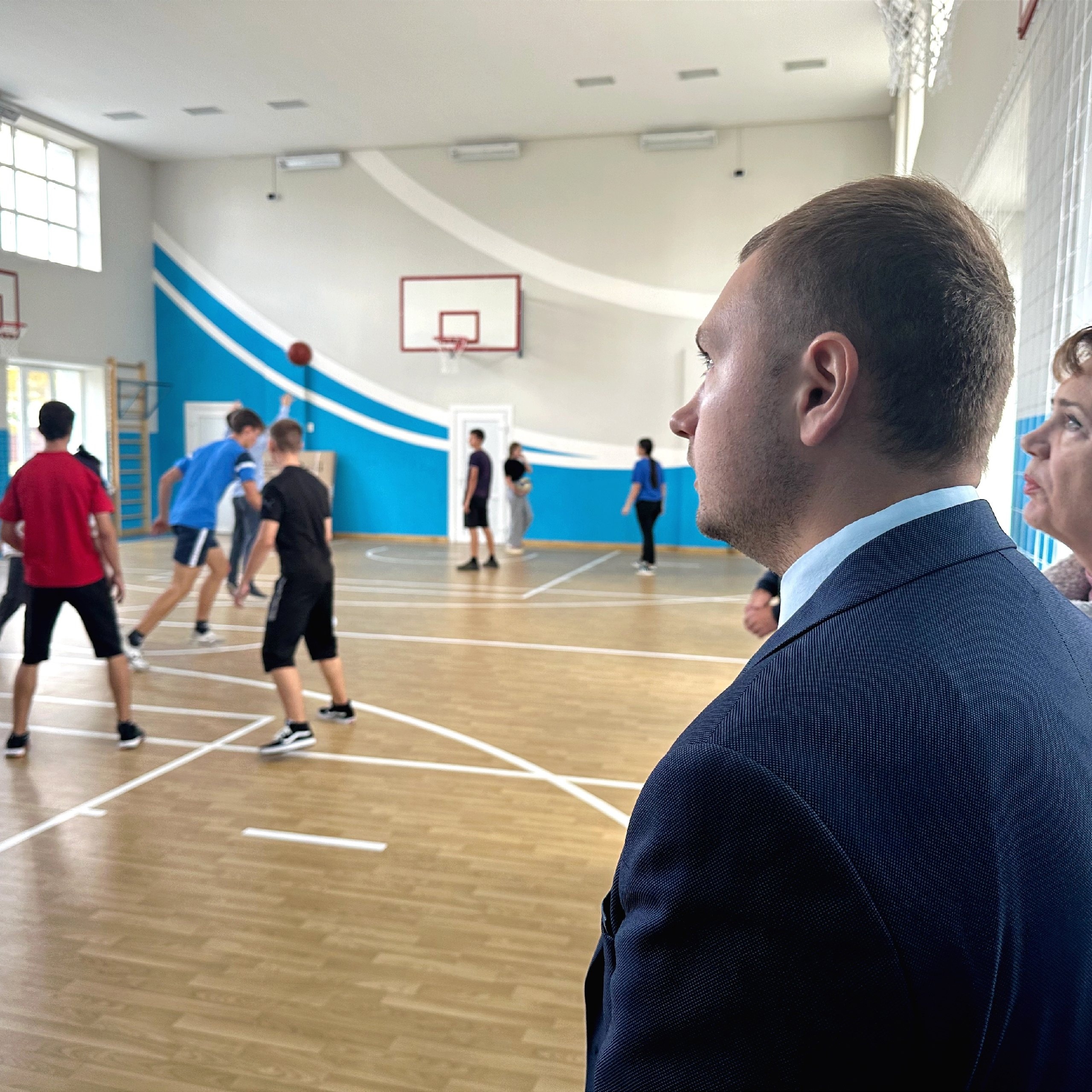 Депутат совместно с директором гимназии прошелся по учреждению и осмотрел результаты проделанной работы. Ремонт проходил не просто, объем работ серьёзный.