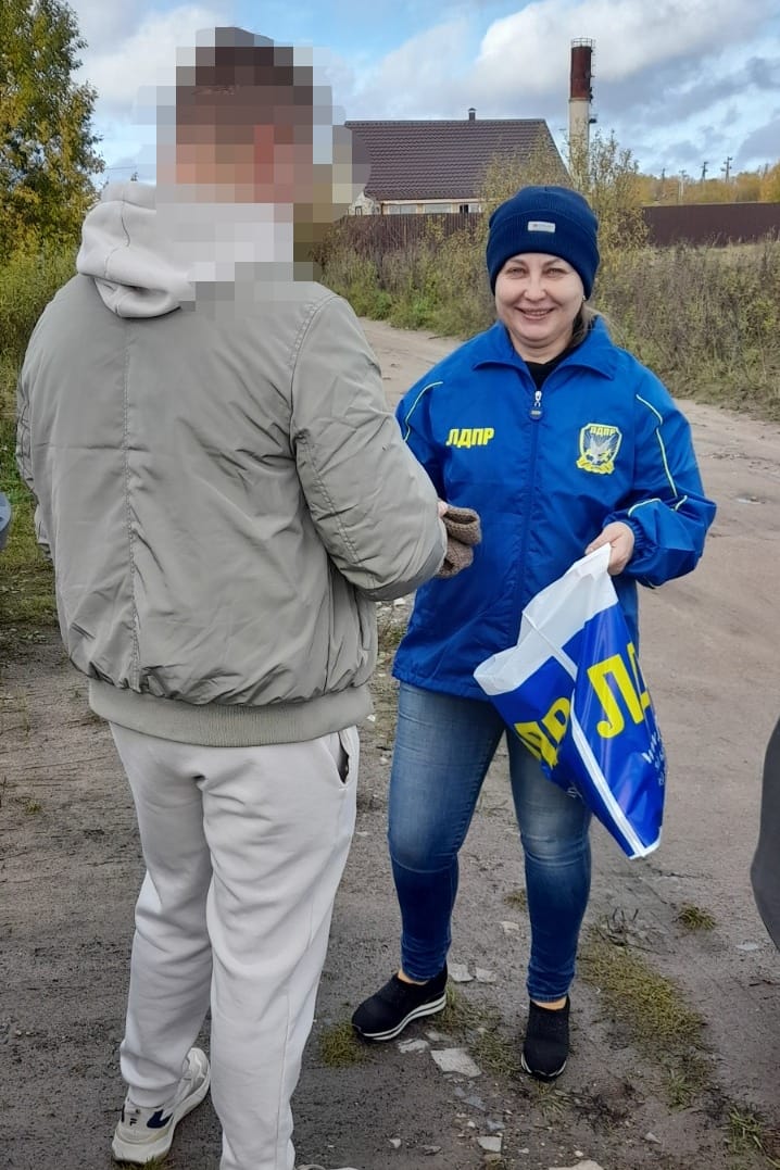 В Тверской области в Торжке Координатор местного отделения ЛДПР Елена Иошина передала гуманитарную помощь бойцу СВО и его сослуживцам