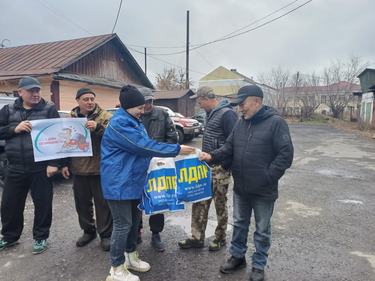 Активисты ЛДПР поздравляли работников автомобильного транспорта и просто владельцев автомобилей с праздником и подарили памятные сувениры с символикой партии. А также партийцы нарисовали плакат «С Днём автомобилиста!» и подарили водителям.