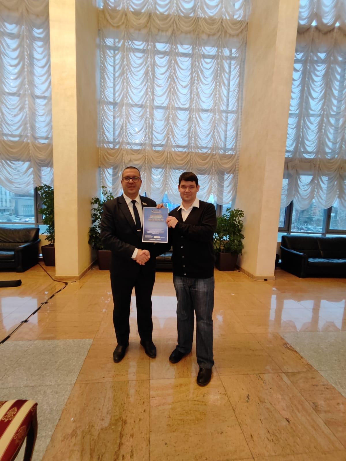 По итогу встречи депутату ЛДПР вручили грамоту первой степени как победителю среди капитанов команд.