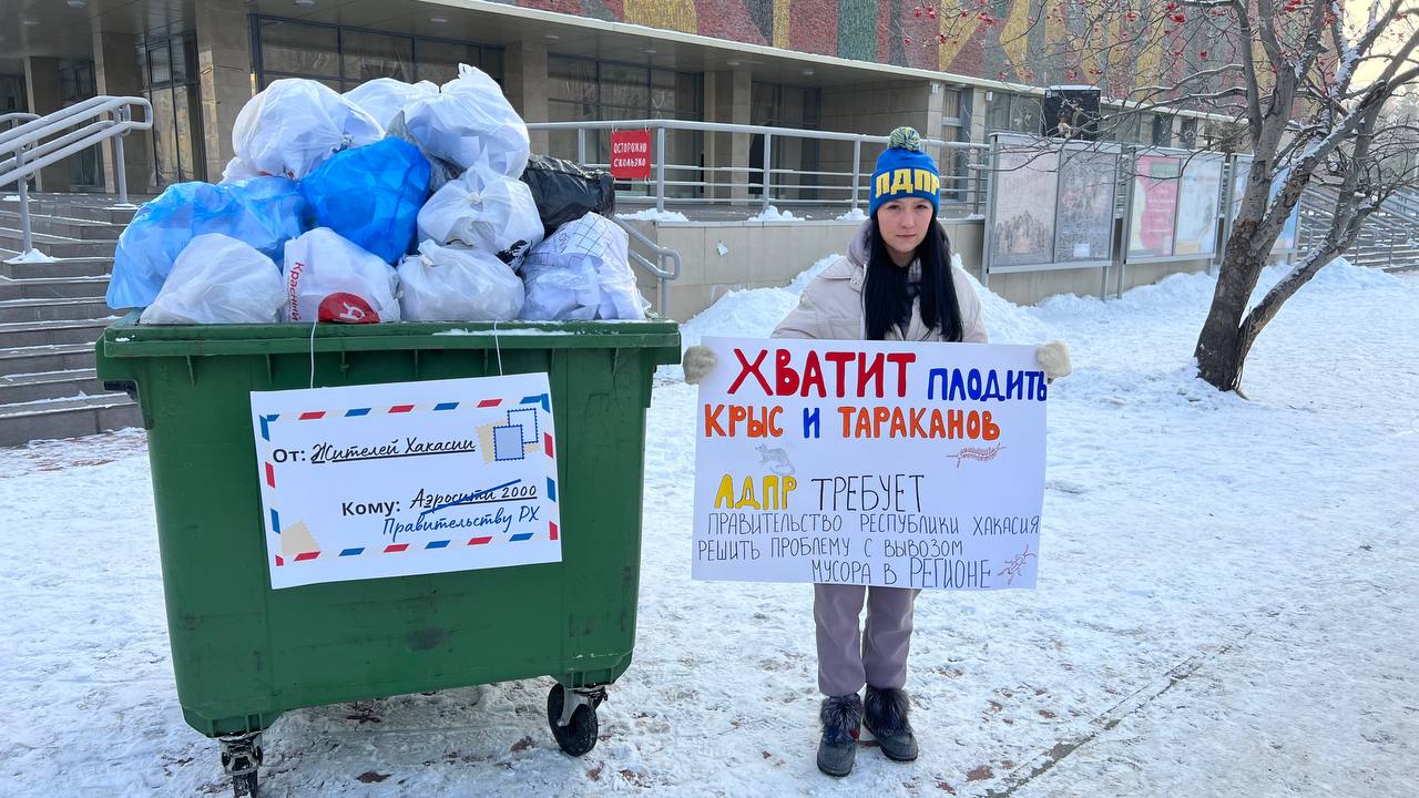 У здания Правительства Хакасии прошел пикет активистки Хакасского регионального отделения ЛДПР против отвратительной работы регионального оператора по вывозу мусора у населения