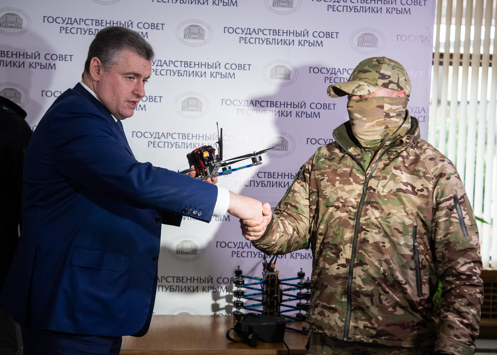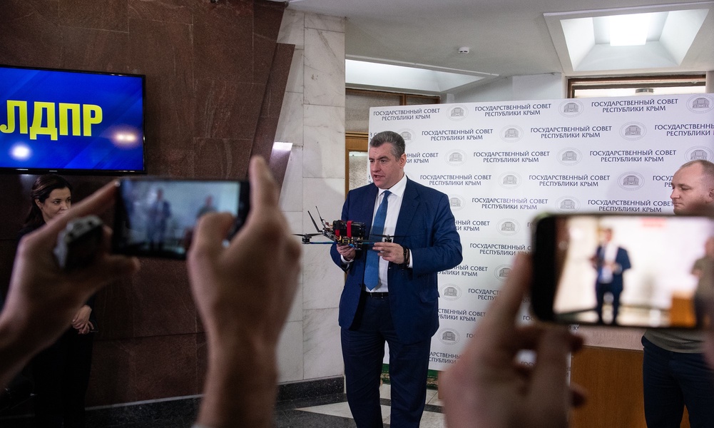 Председатель ЛДПР Леонид Слуцкий в рамках рабочей поездки в Крым передал бойцам отдельного мотострелкового батальона 10 дронов-камикадзе «Жириновский». Их вместе с бронежилетами отправят в зону СВО