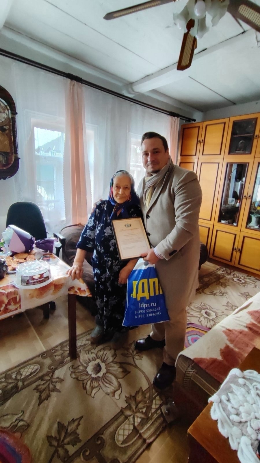 Заместитель координатора Тюменского районного отделения ЛДПР Александр Галыгин навестил труженицу тыла, ветерана труда Анну Буторину совместно с представителем Администрации и председателем ветеранов Новотарманского муниципального образования, вручил Благодарственное письмо от Тюменской областной Думы и пожелал крепкого здоровья