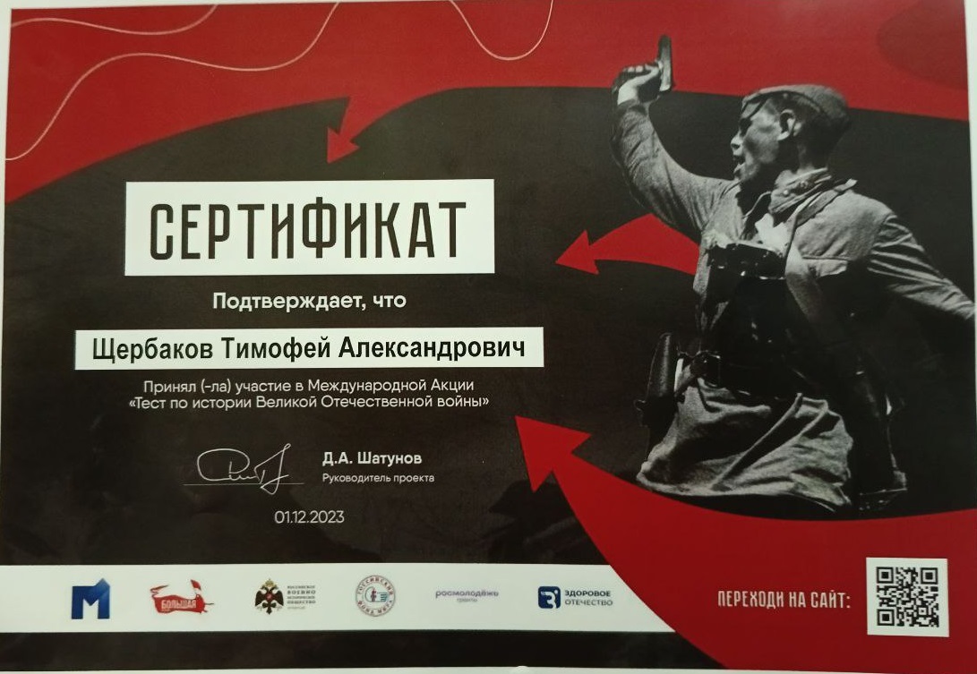 Тимофей Щербаков принял участие в Международной Акции «Тест по истории Великой Отечественной Войны»